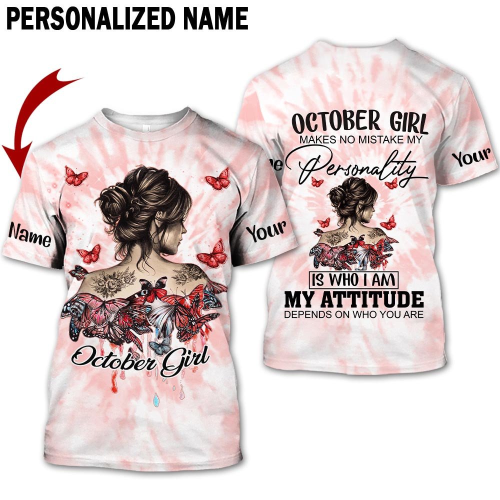 Personalized Name Birthday Outfit October Girl Hippie Bufterfly Red Birthday Shirt For Women TO2823