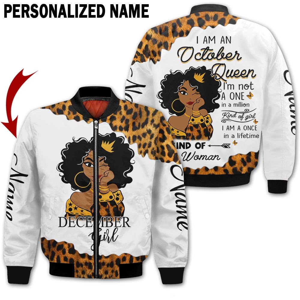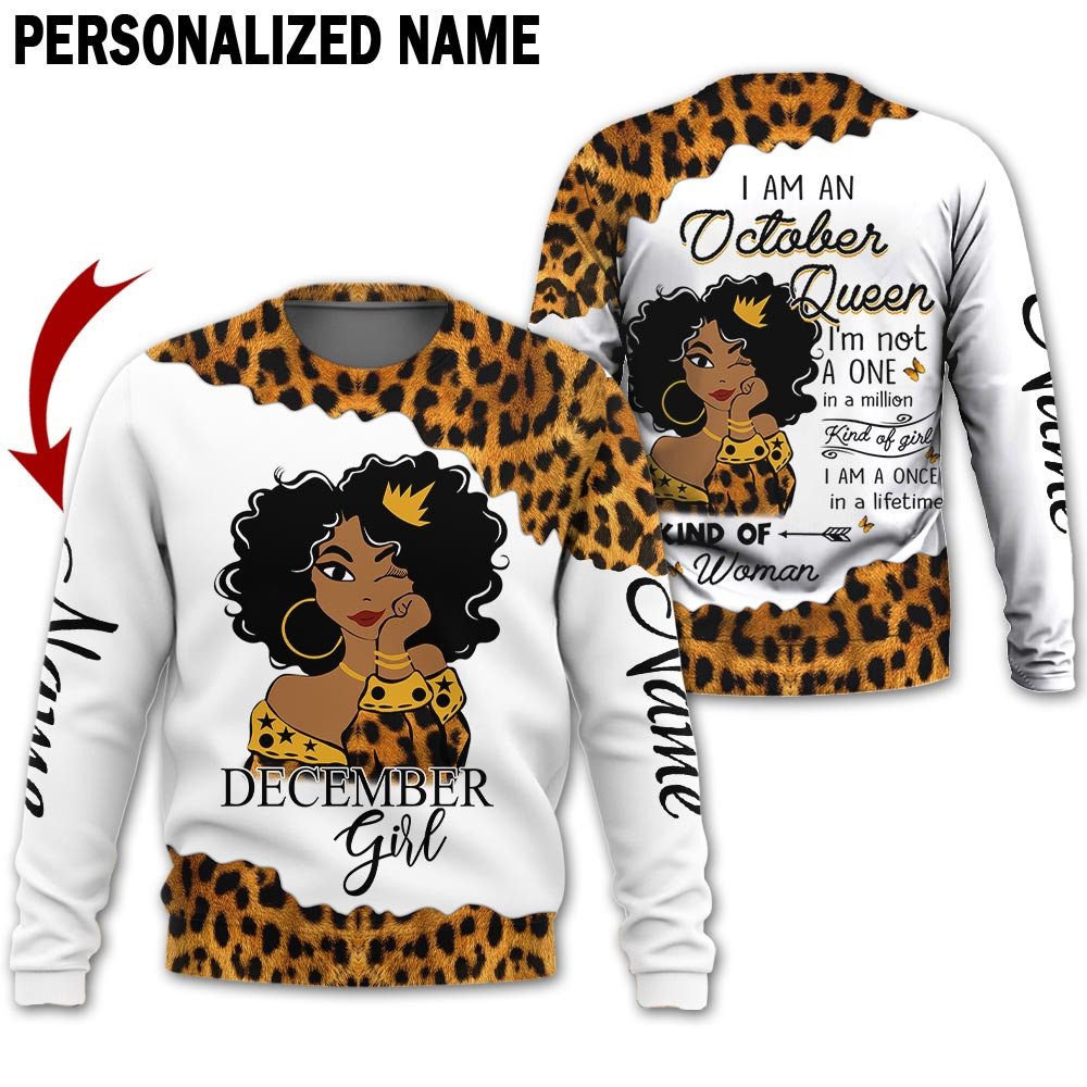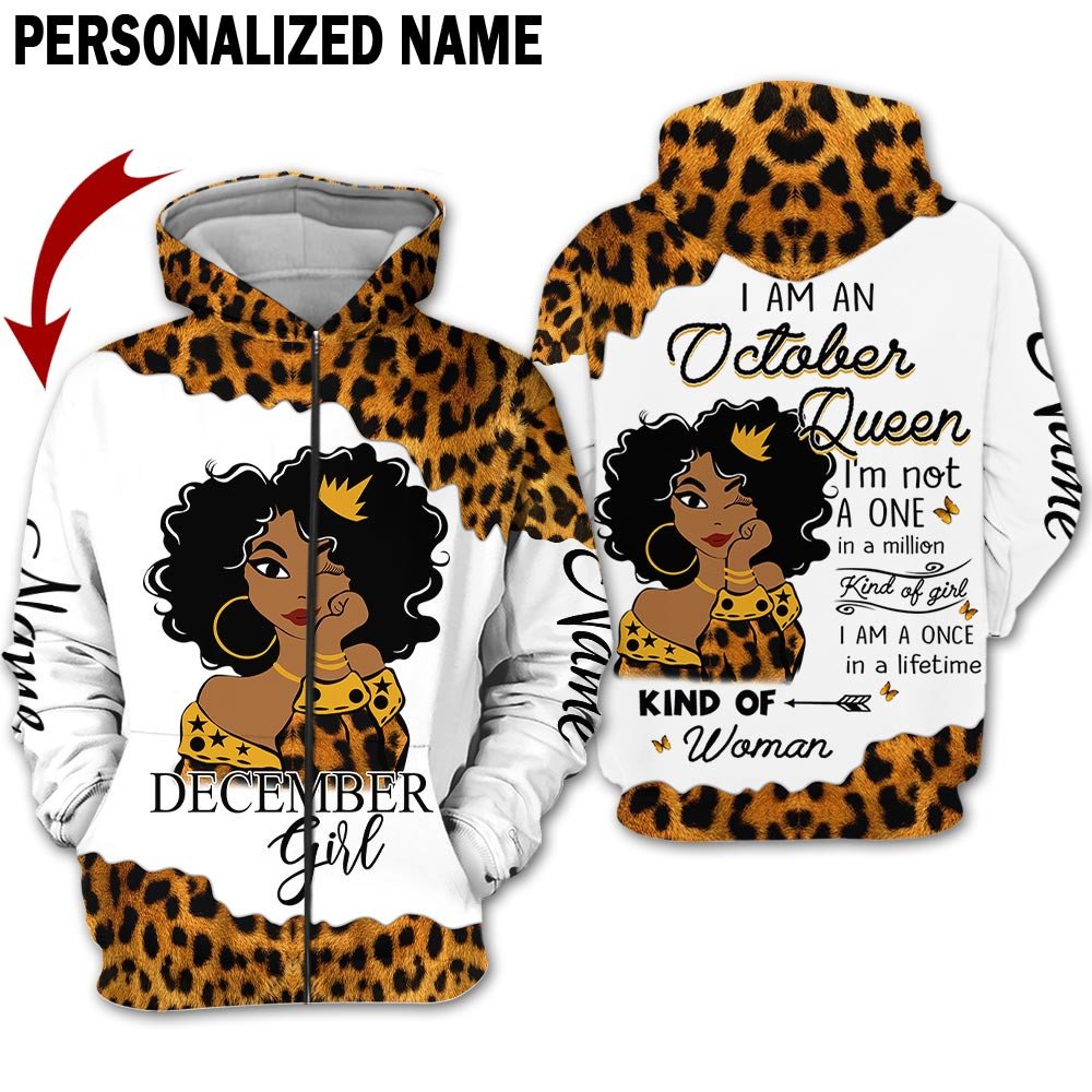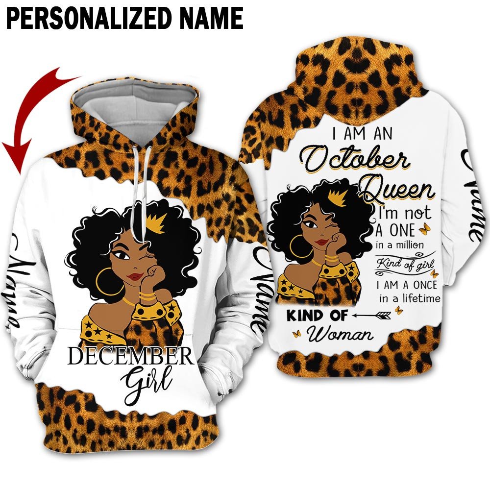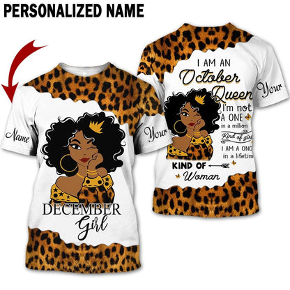 Personalized Name Birthday Outfit October Girl Leopard Skin Yellow Kind Of Woman All Over Printed Birthday Shirt TO2828