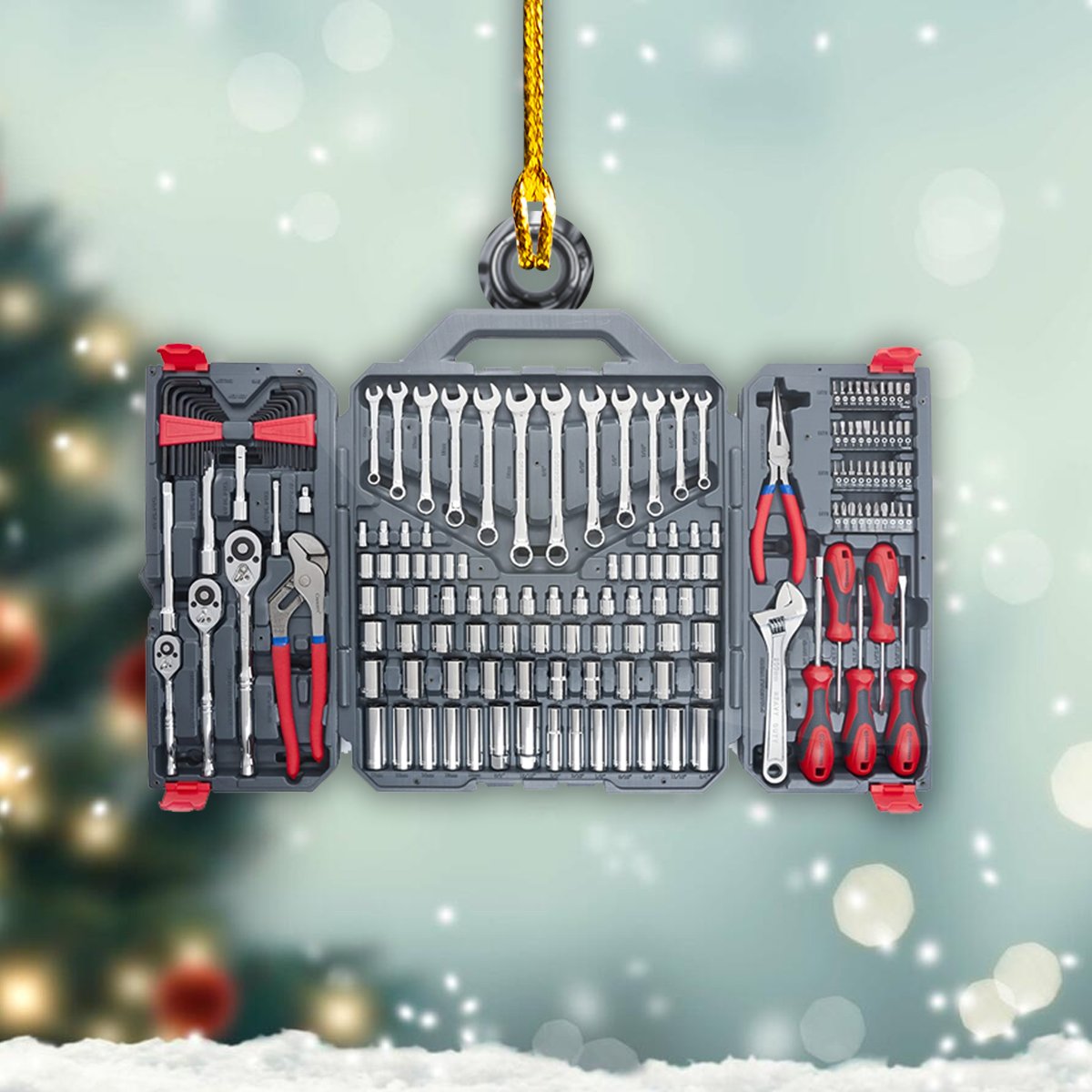 Personalized Name Mechanic Tool Box Custom Shaped Ornament, Christmas Mechanic Gift for Him SO0957