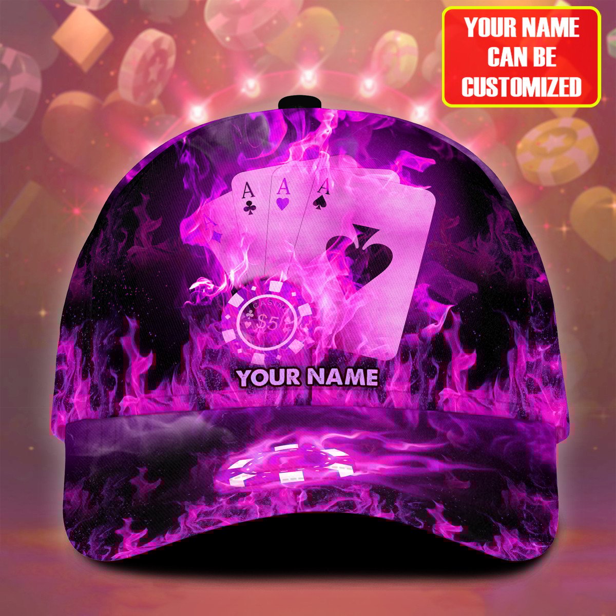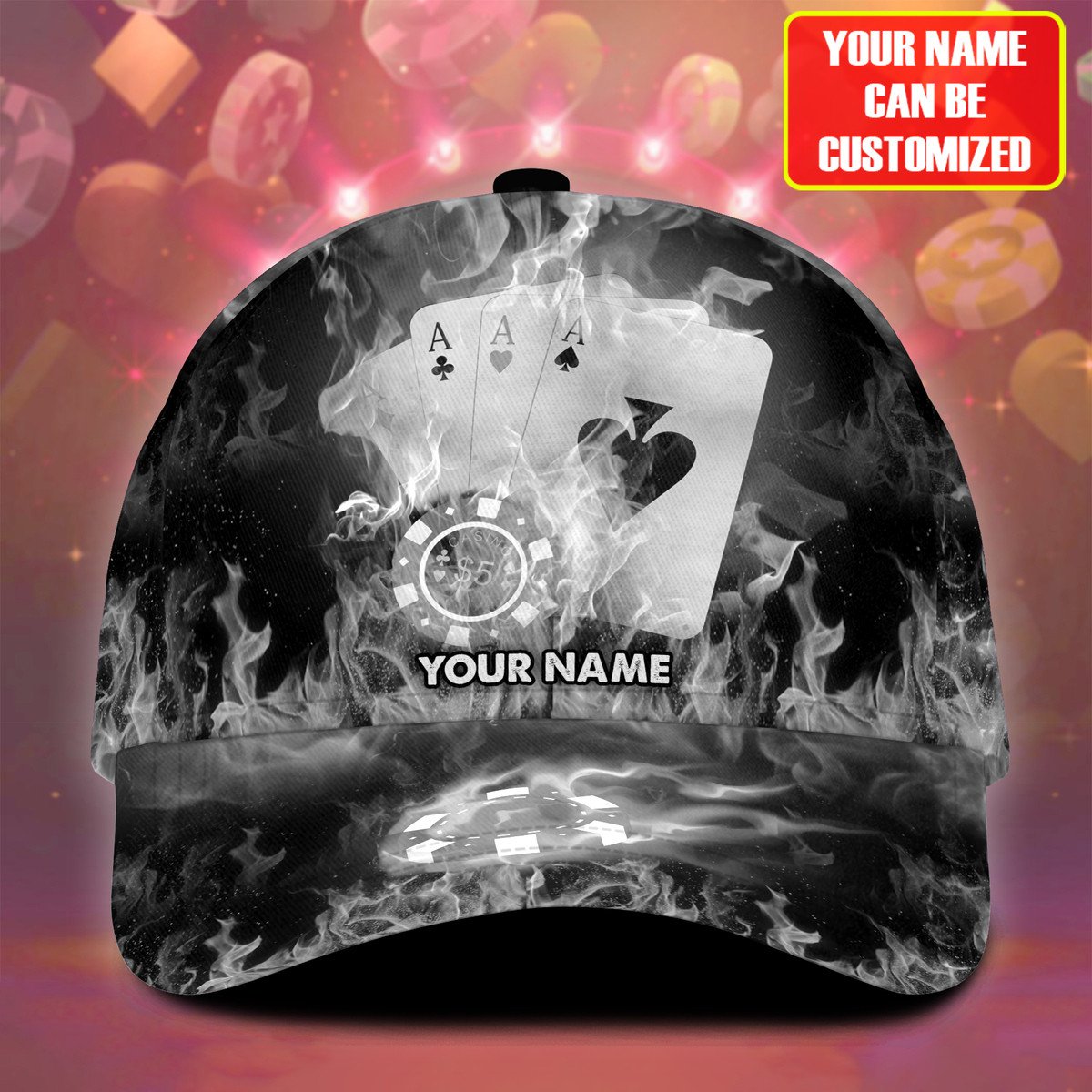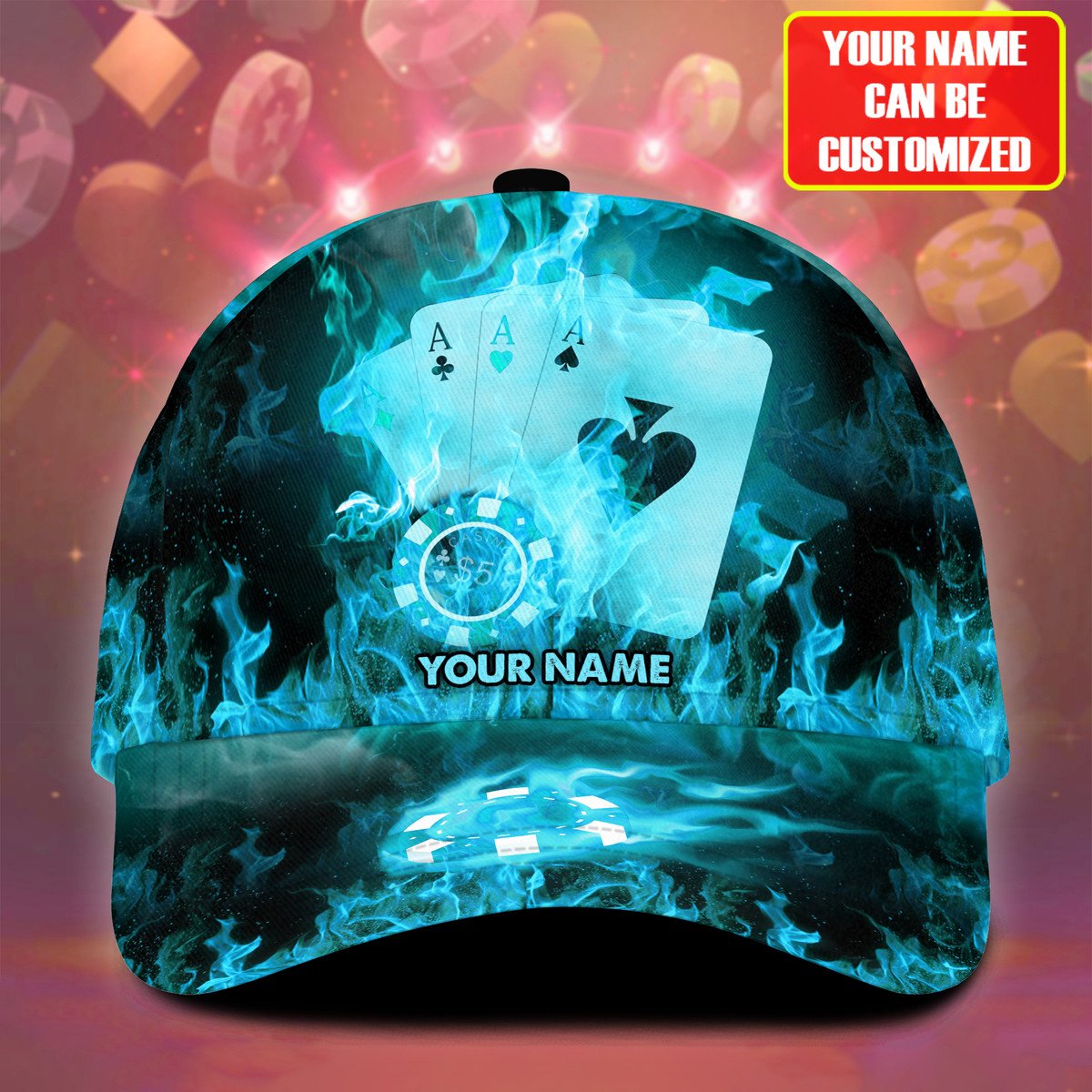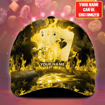 Personalized Name Multi Color Fire Poker Classic Cap, Poker On Fire Hat for Men CO0187