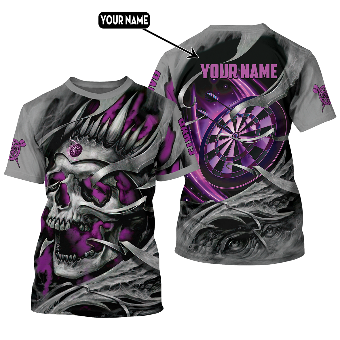 Personalized Name Multicolor Teal Skull Darts All Over Printed Unisex Shirt, Uniform Shirt Dart Team DMO0001
