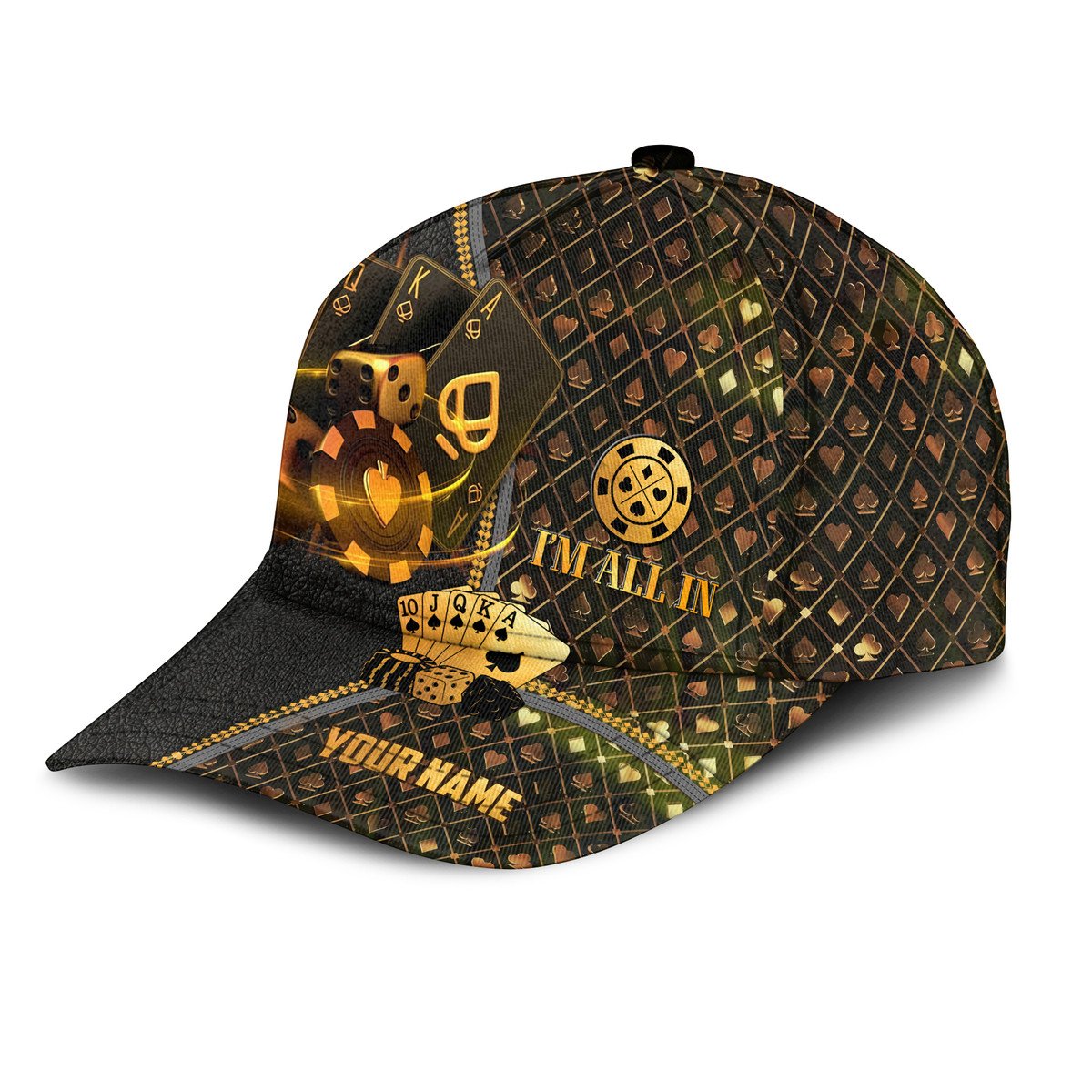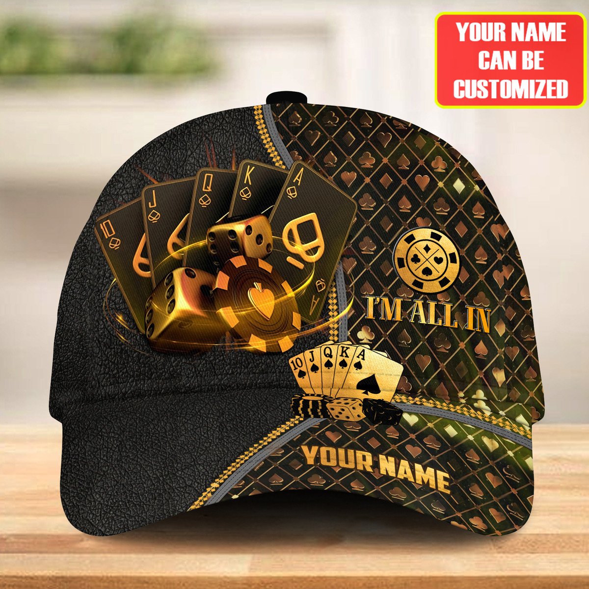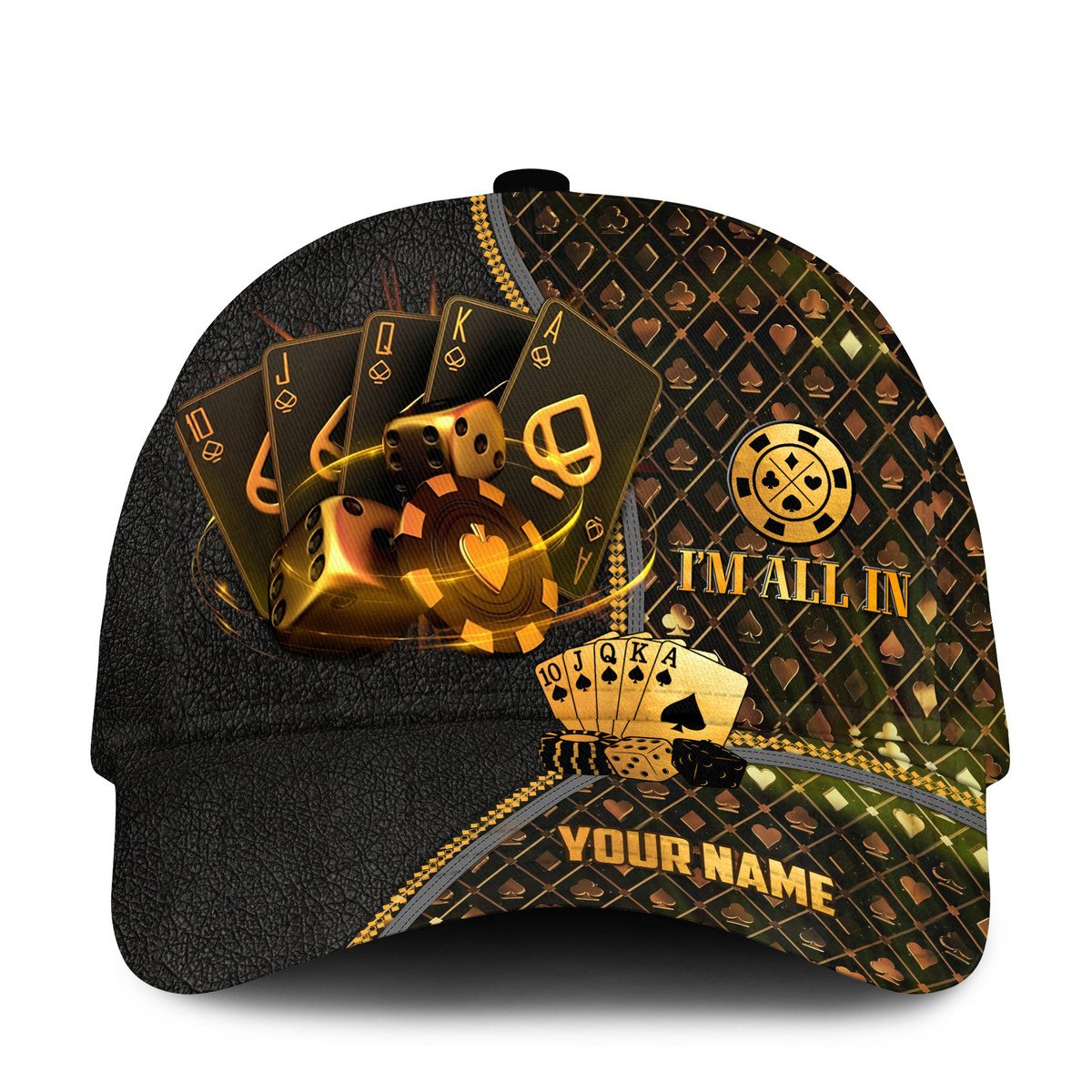 Personalized Name Leather Poker Classic Cap, Funny Cap I'm All In Poker, Cap Hat for Men Love Poker CO0197