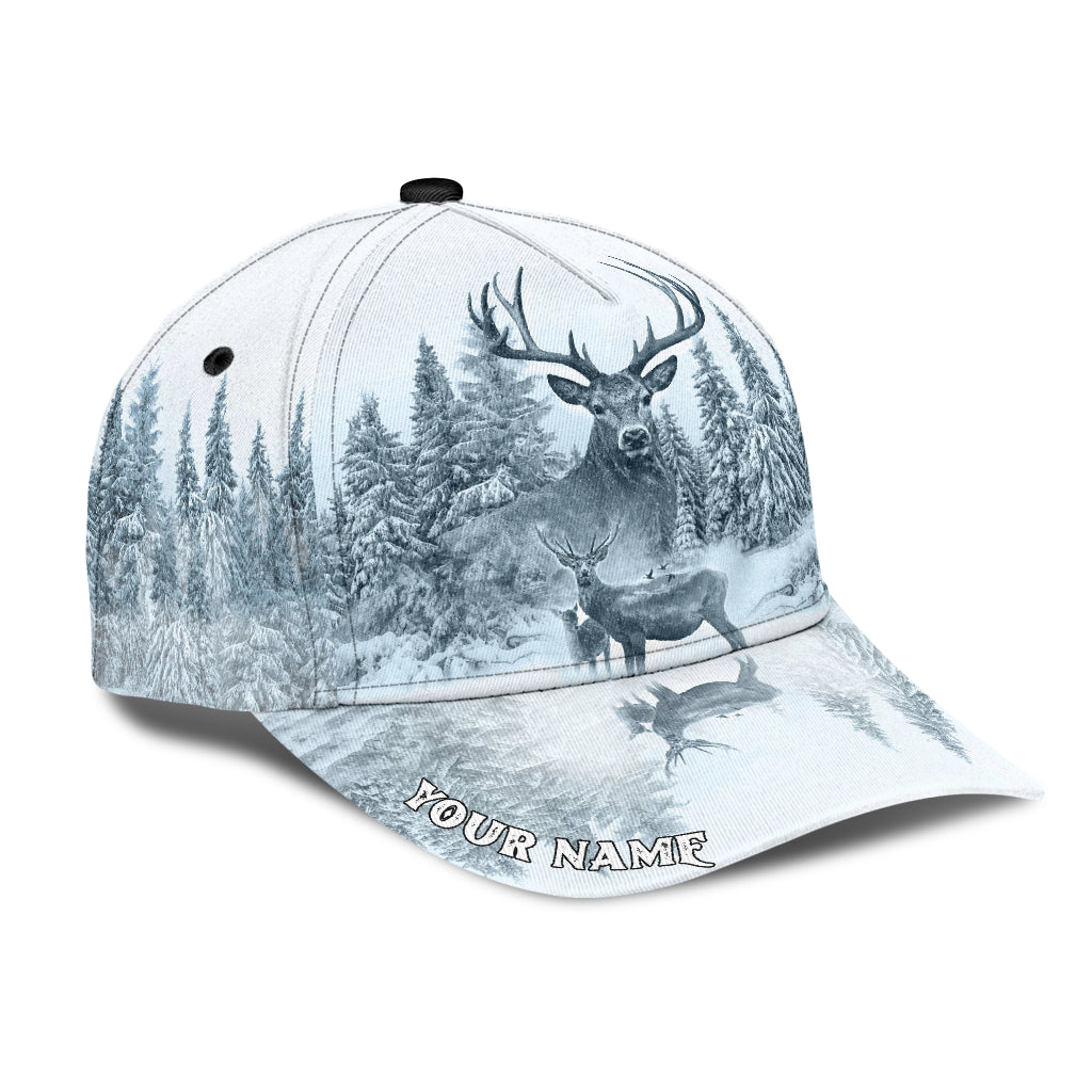 Personalized Name White Deer Hunting Classic Cap Hat, Hunting Cap Hat 3D Full Print CO0633