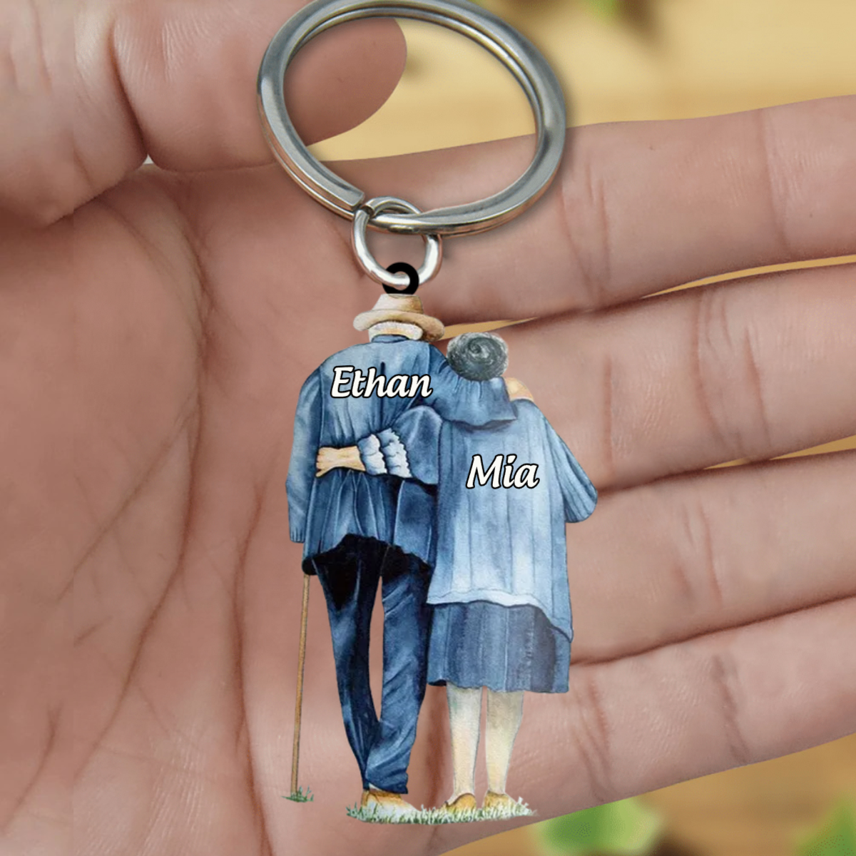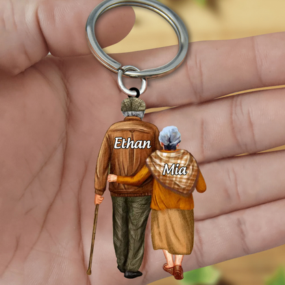 Personalized old couple Acrylic Keychain- Gift For Wife, Anniversary, Engagement, Wedding, Marriage Gift KO0024