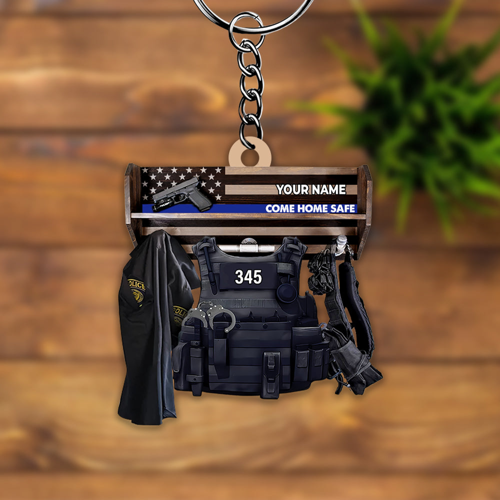 Personalized Police Uniform Acrylic Keychain, Custom Name and Number Flat Police Keychain for him KO0180