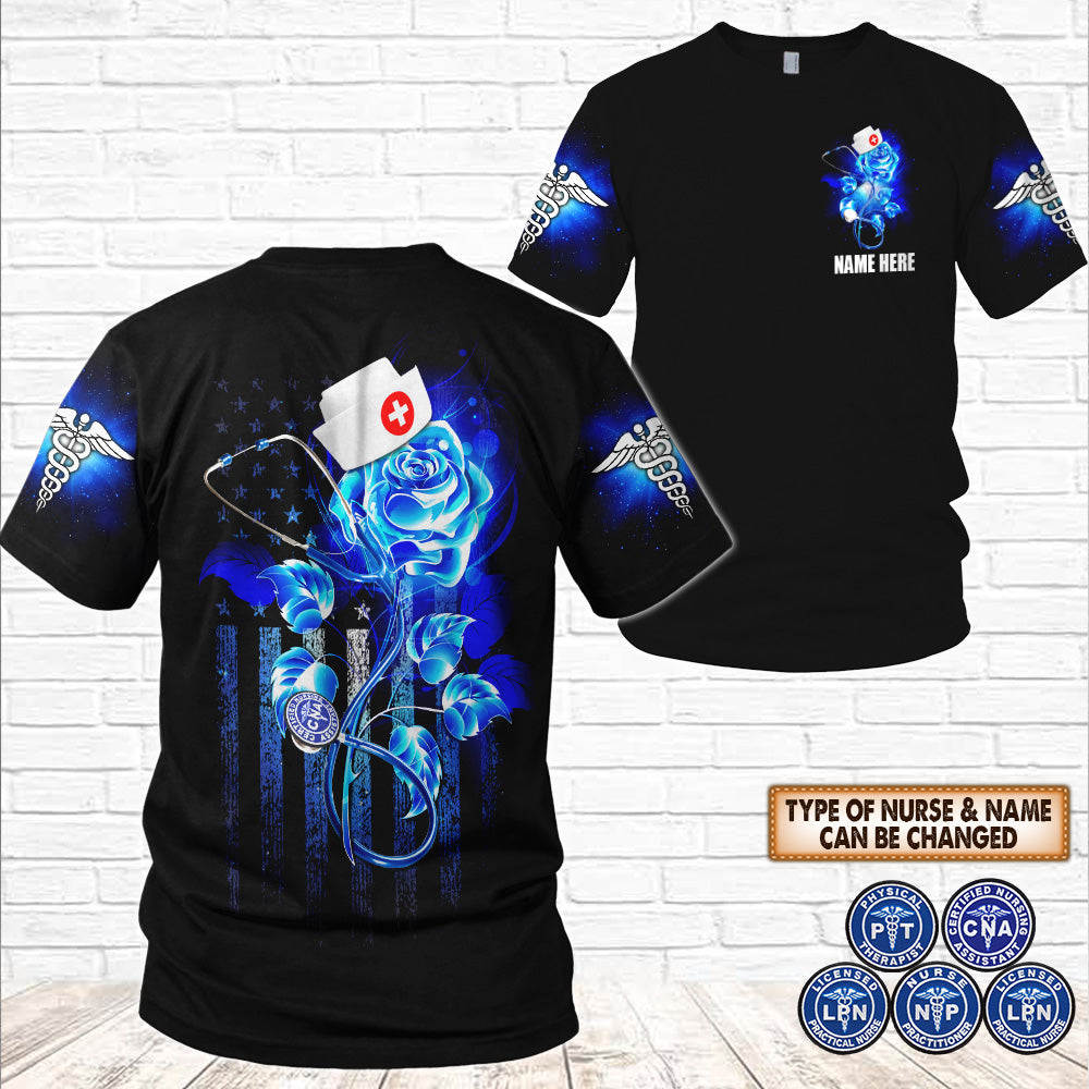 Personalized Shirt Nurse Burning Blue Rose 3D All All Over Print Shirts For Nurses TO3267