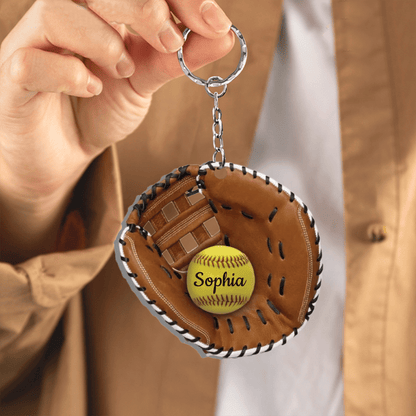 Personalized Softball Flat Acrylic Keychain for Softball Lovers, Gift for Daughter, Girl KO0344