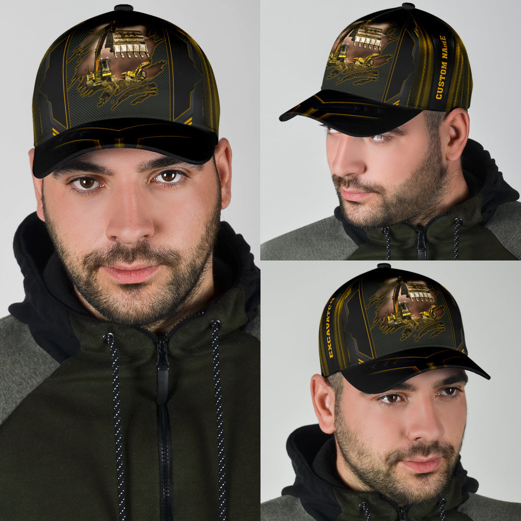 Personalized With Name Excavator 3D Full Printing Classic Cap Hat, Excavator Baseball Cap Hat CO0496