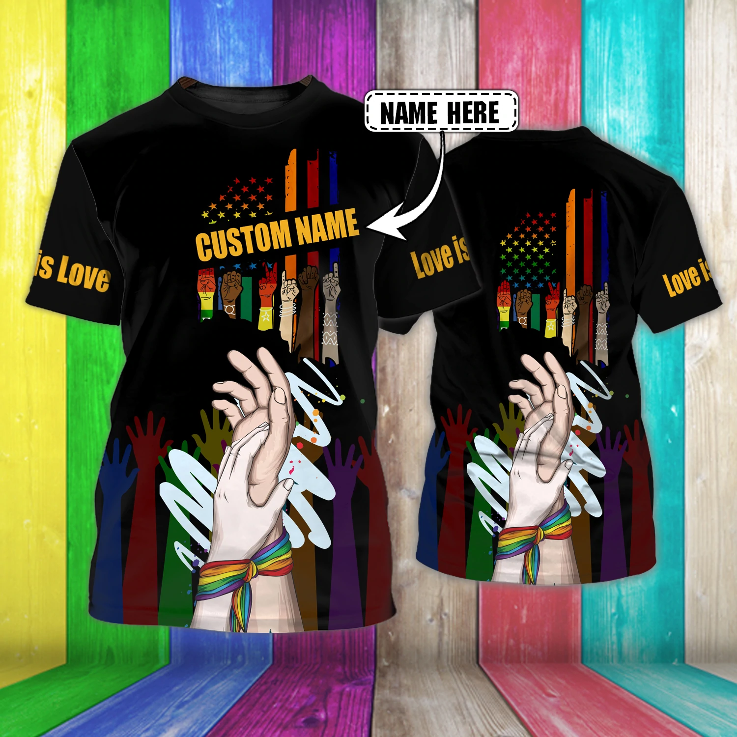 Personalized With Name Love Is Love T Shirt, Pride Shirt In USA Flag Background, Ally Shirts LO0824