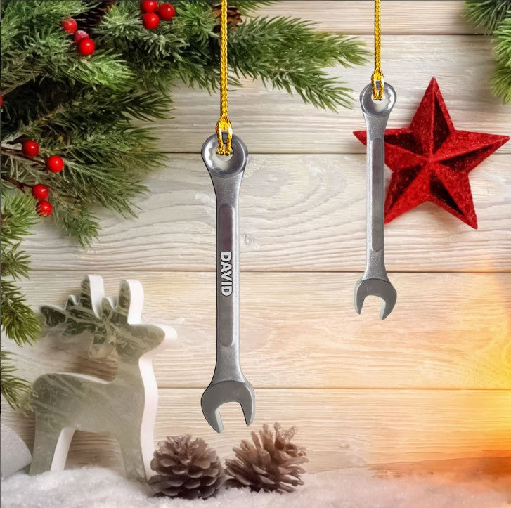 Personalized Wrench Tree shape acrylic ornament, ornament for Mechanic OO3664