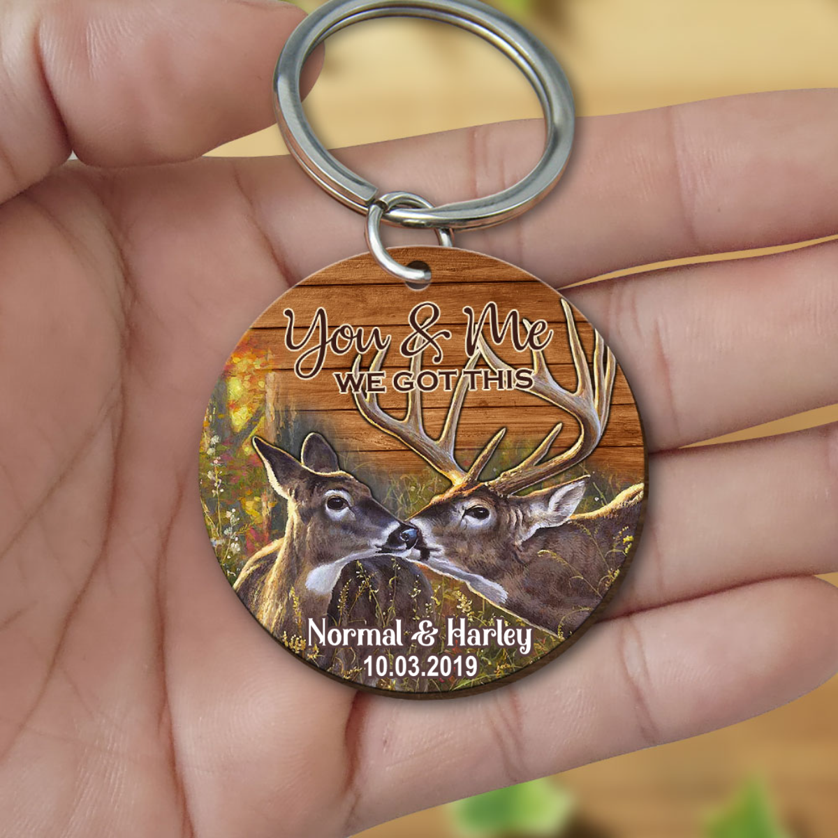 Personalized You And Me We Got This Deer Couple Wooden Keychain KO0073