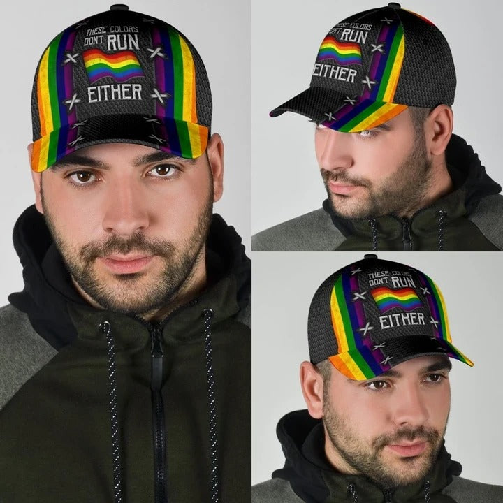 Pride 3D Baseball Cap Hat, LGBT These Colors Don't Run Either, Gifts For Couple Gay Man CO0264