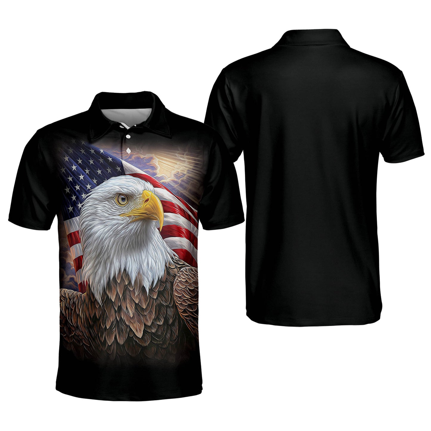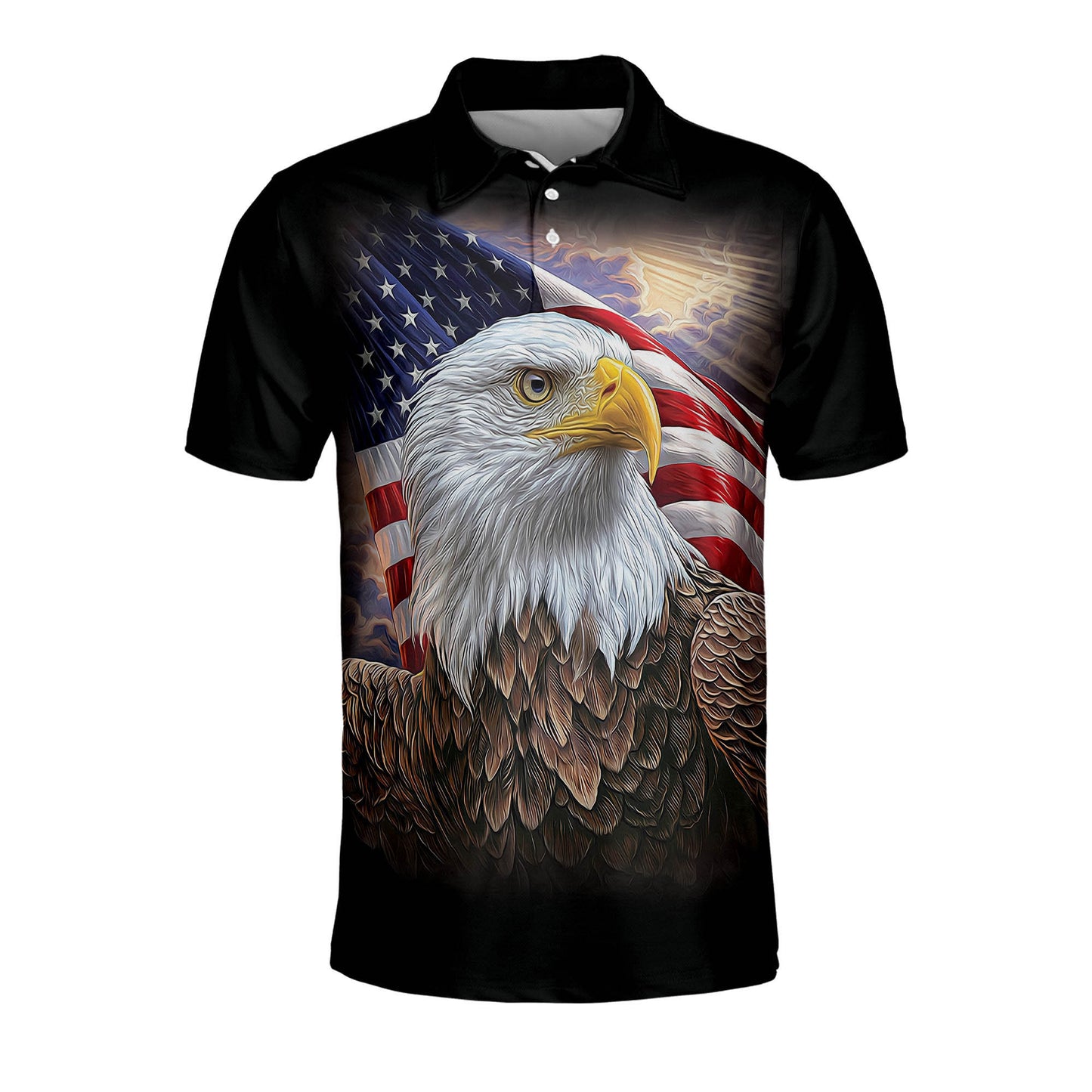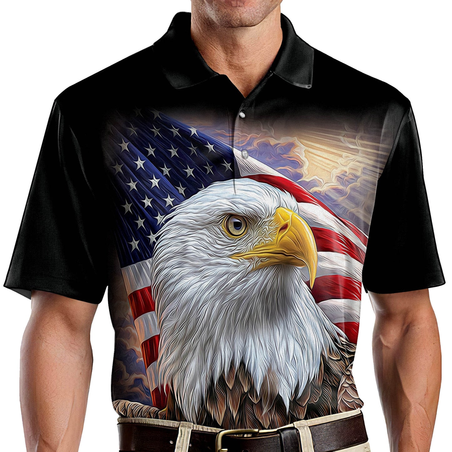 Printed American Flag Design With Eagle Polo Shirt EG0006