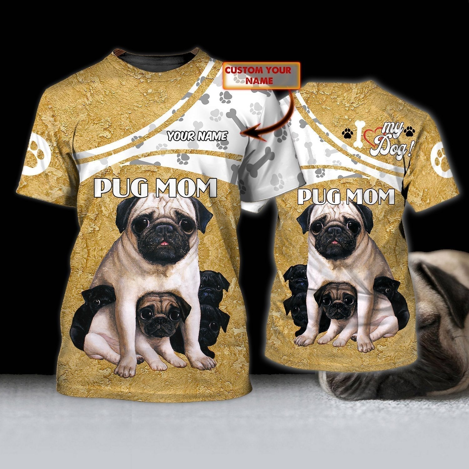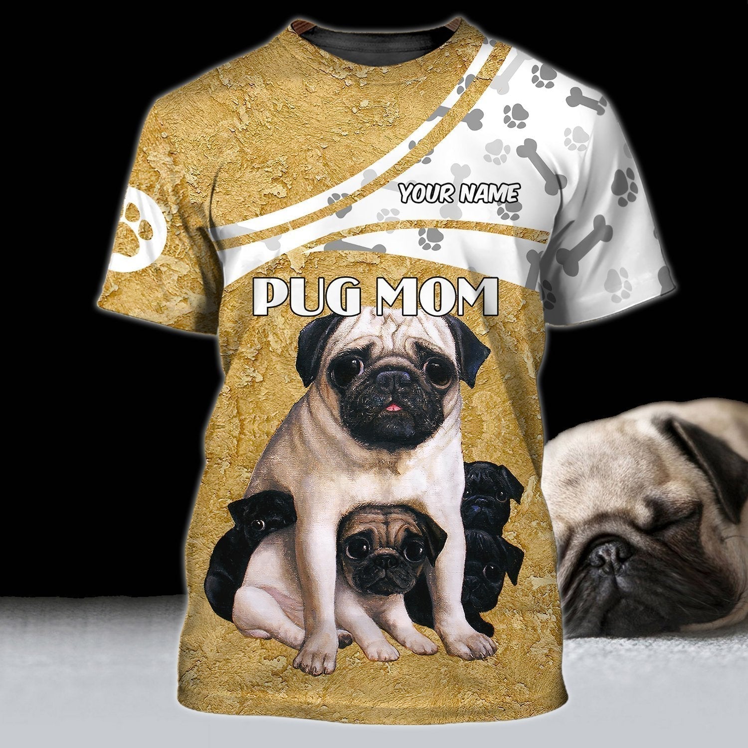 Custom Pug Mom 3D T Shirt For Men Women, Dog Mom Shirts TO1119
