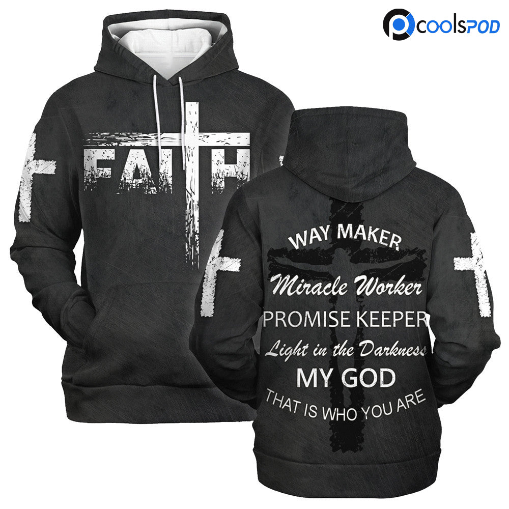 Religious Jesus 3D Hoodie Way Maker God Hoodie Miracle Worker Faith Hoodie SO0458