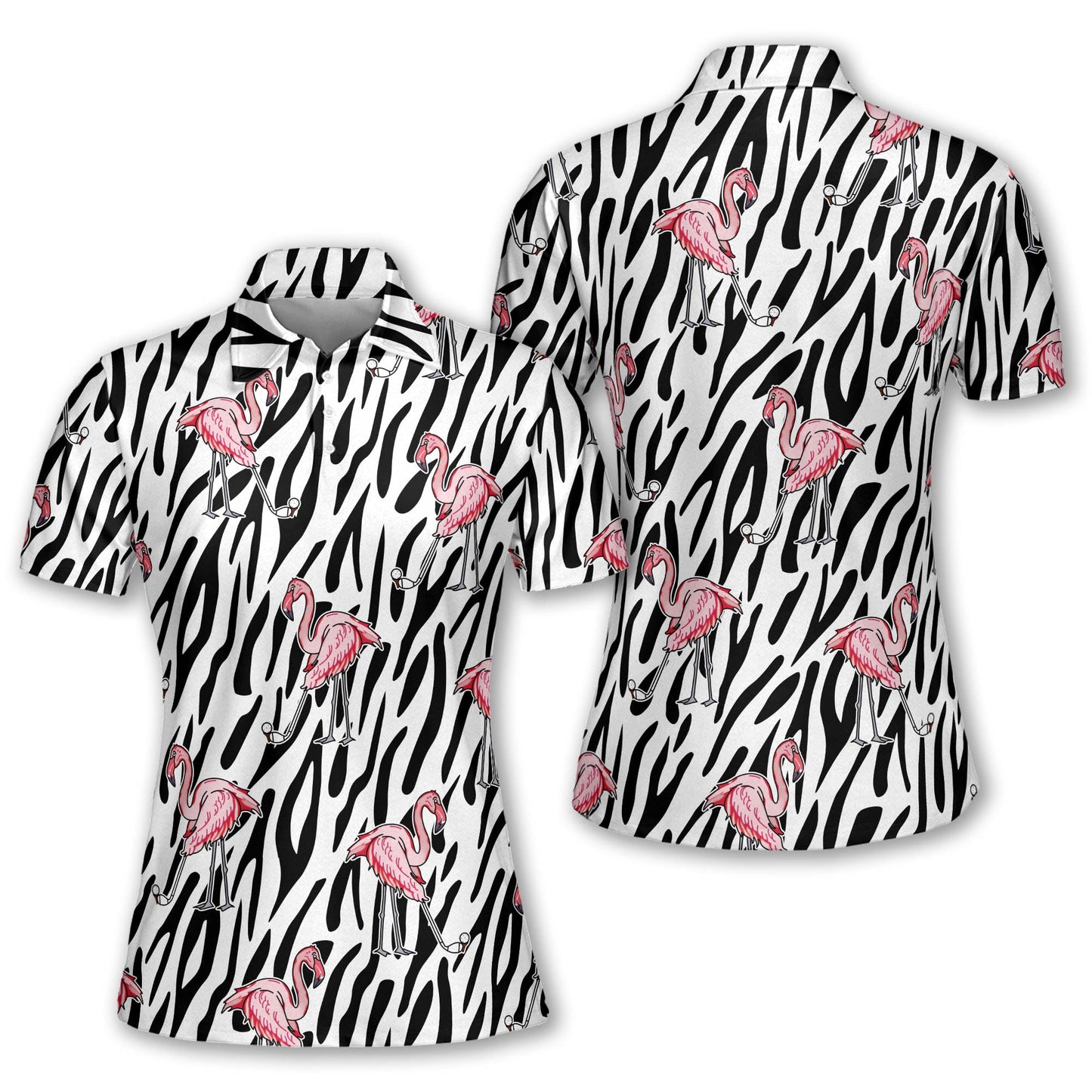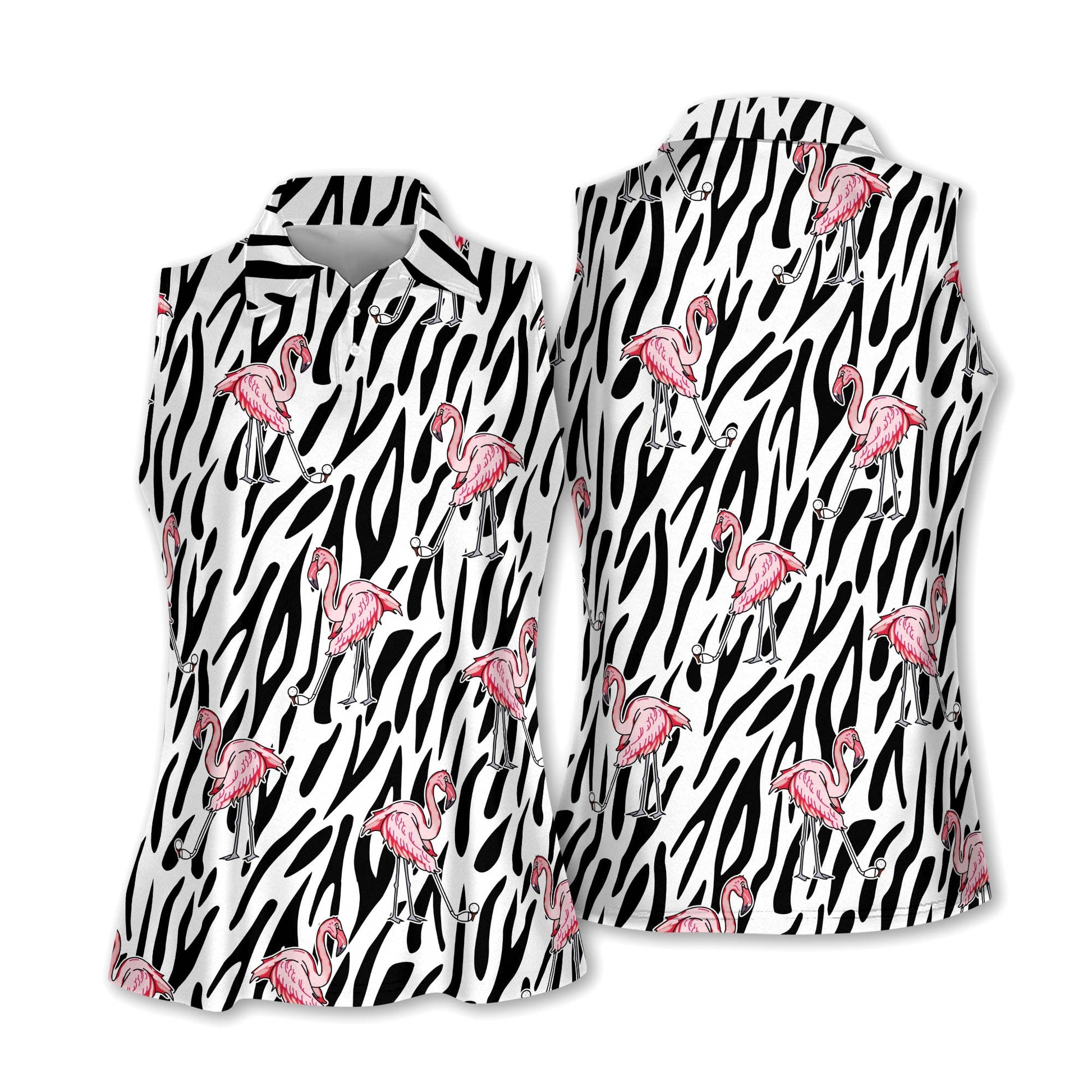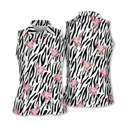 Seamless Flamingo Golf Zebra Background Women Sleeveless Polo Shirt, Short Sleeve Polo Shirt H0059