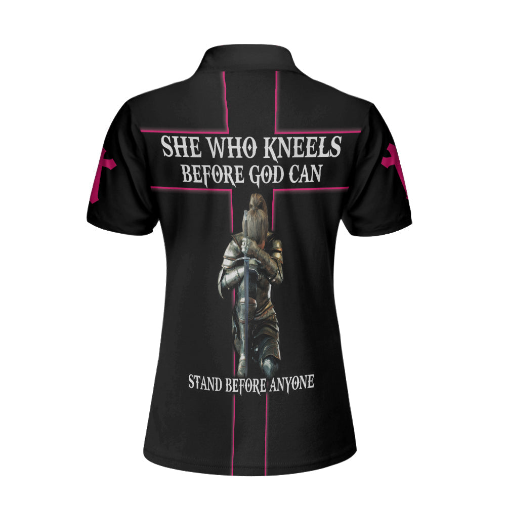 She Who Kneels Before God Can Stand Before Anyone Short Sleeve Women Polo Shirt, Gift Idea For Ladies Lasfour SO1419