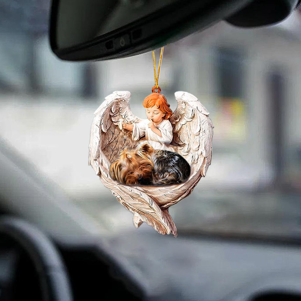 Sleeping Yorkshire Terrier Protected By Angel Car Interior Hanging Ornament OO1062