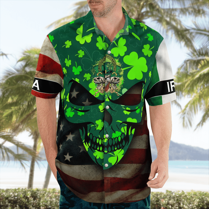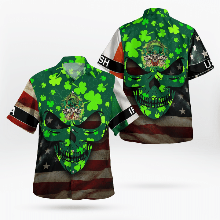 St. Patrick's Day Full Skull Art And Drinking Skull Irish Flag American Flag Hawaii Shirt - Gift For Irish PO0066