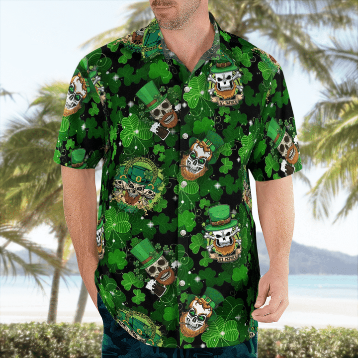 St. Patrick's day Hawaiian Shirt - Many Patrick Skulls Green Clover Pattern Hawaii Shirt - Gift For Irish PO0064