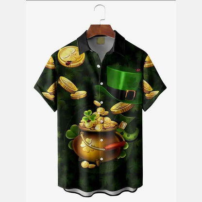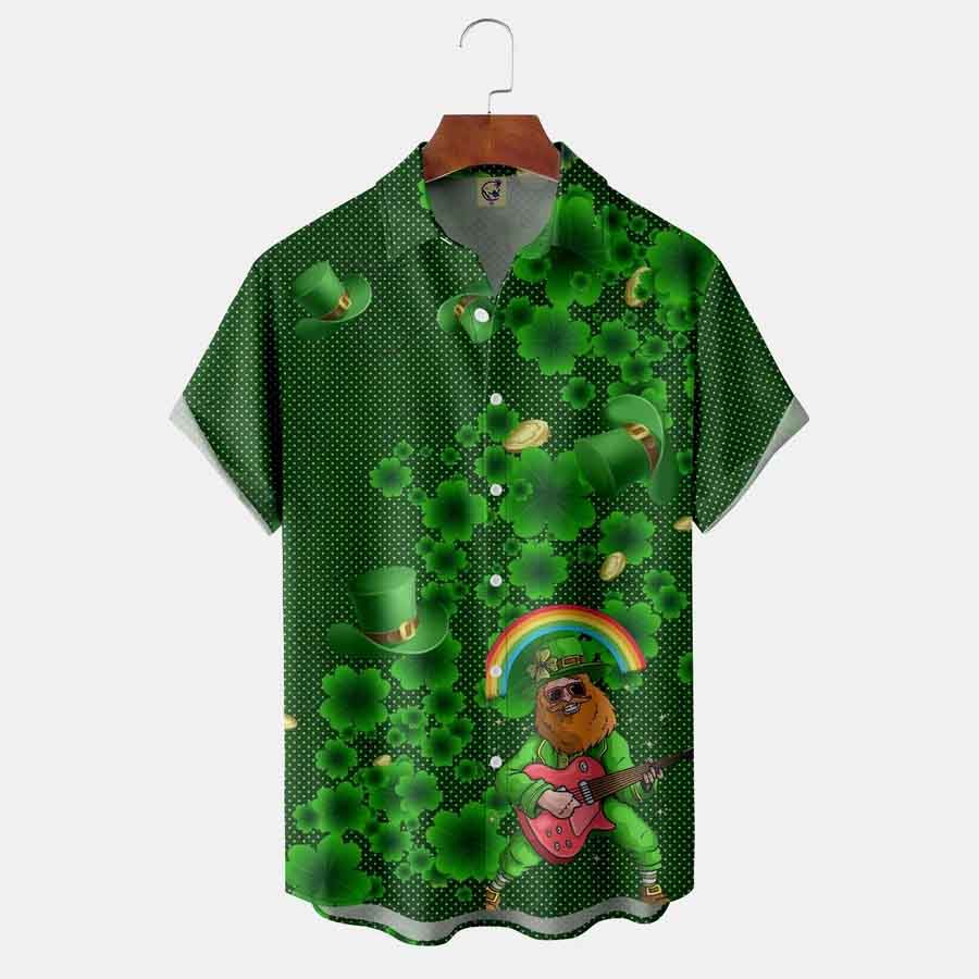 St Patrick's Day Shamrock Gnome Short Sleeve hawwaiian Shirt PO0136