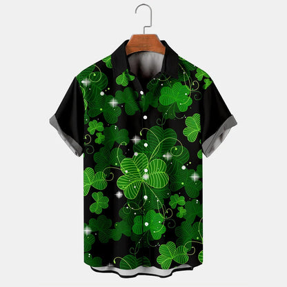 St. Patrick's Men's Hawaiian Shirts Clover Oversized Stretch Easy Care Aloha Shirts, St. Patrick's Day gifts PO0094