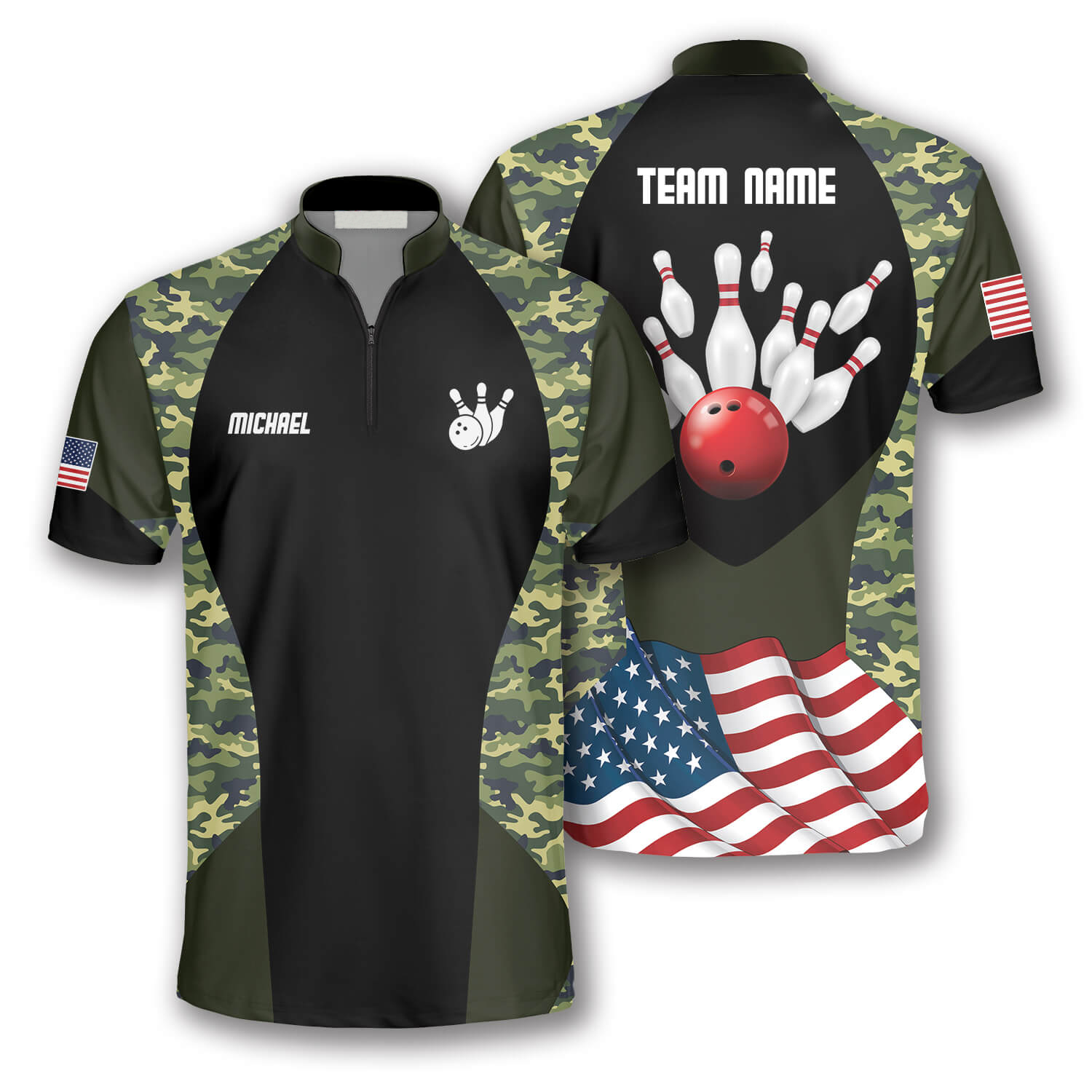 Strike Camouflage Waving Flag Custom Bowling Jerseys for Men, Personalized Name Bowling Shirt SO0751