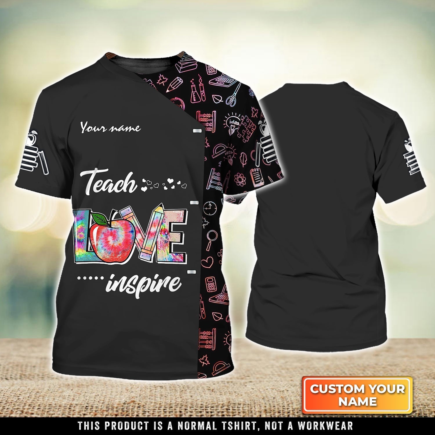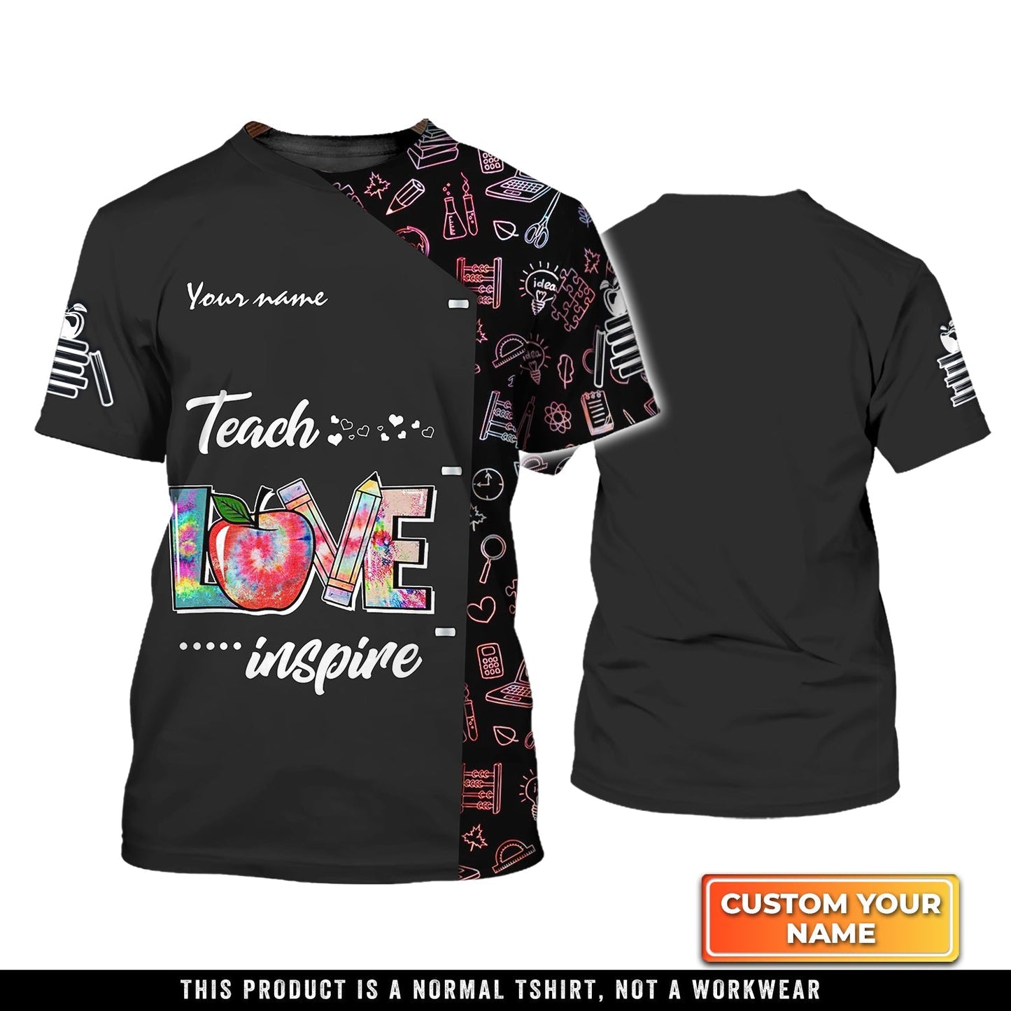 Teach Love Inspire, TeacherLife Personalized Name 3D Tshirt, Black Shirt for Teacher TO3337