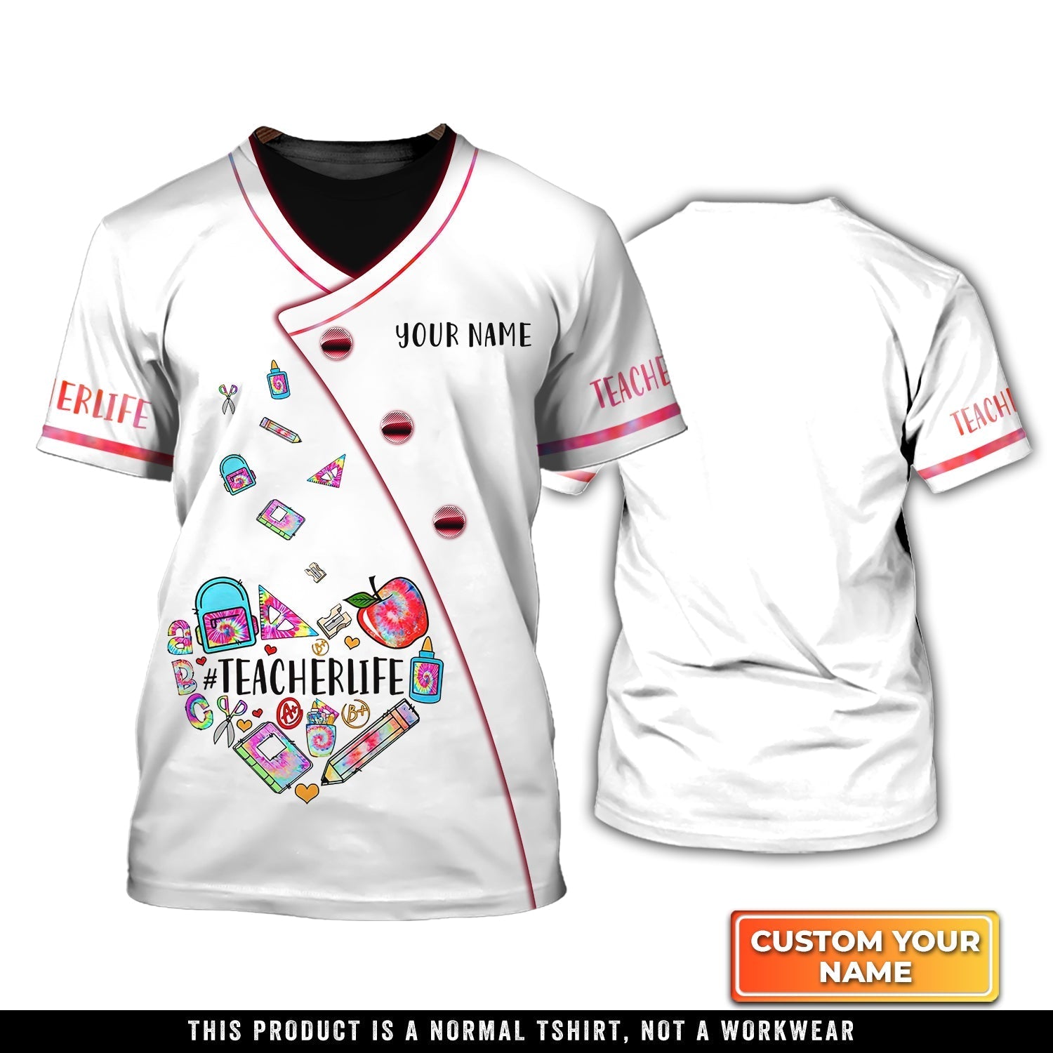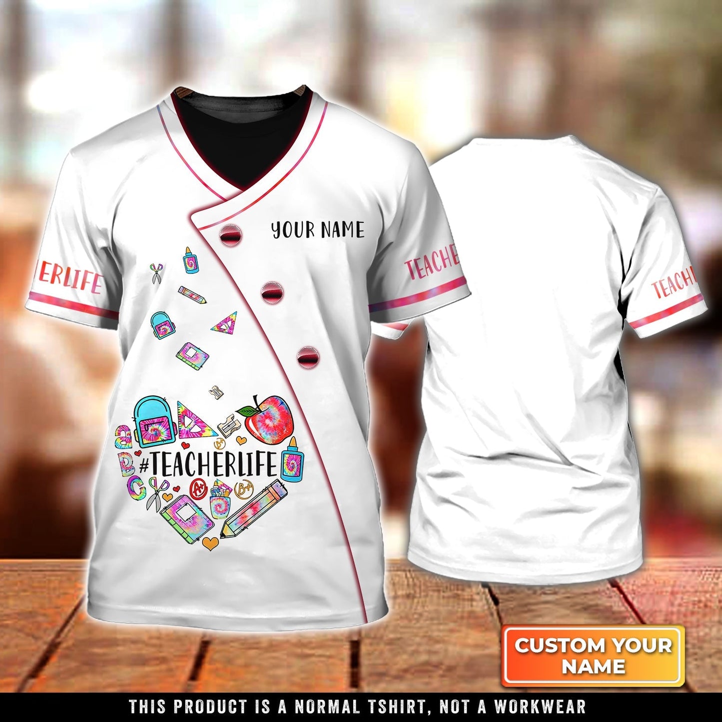 TeacherLife Heart, Love Teach Personalized Name 3D Tshirt, Uniform Shirt Teacher TO3338