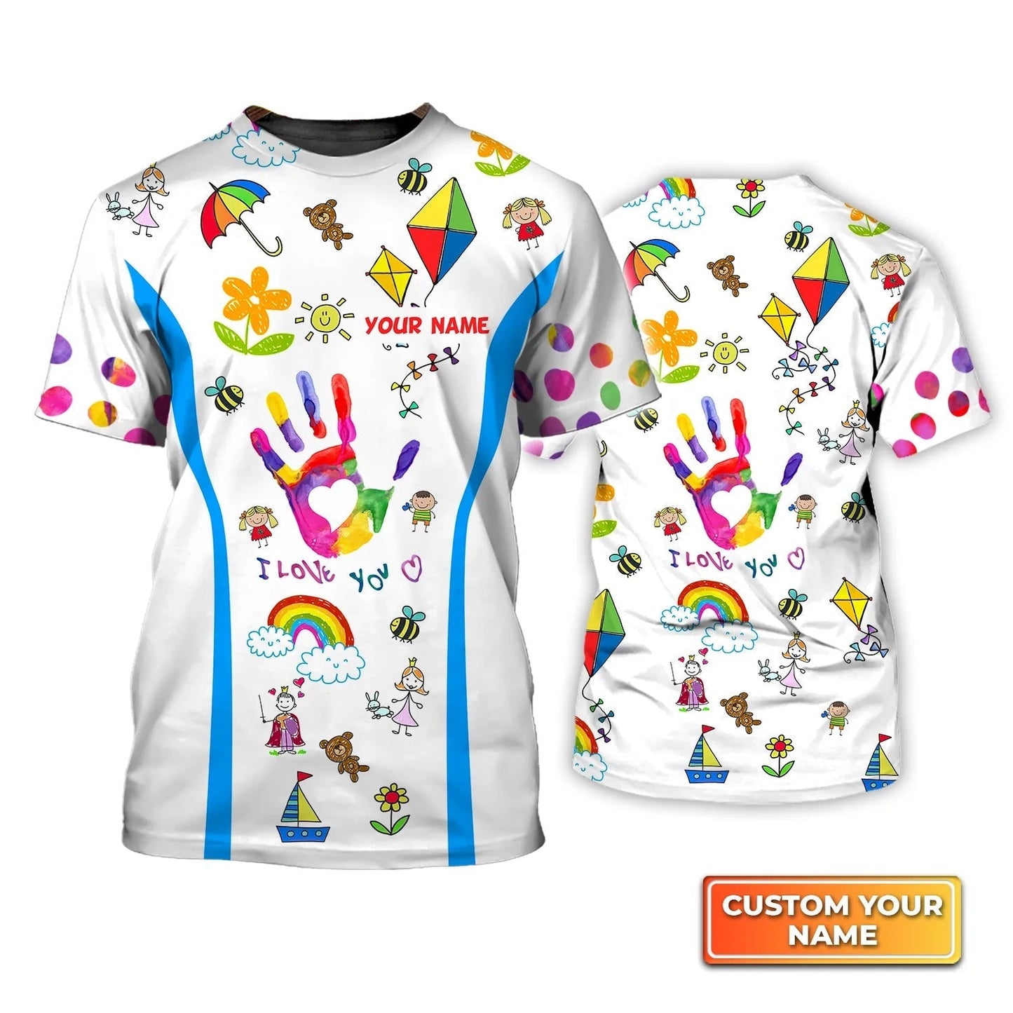 TeacherLife Shirt Men Women, Student Drawn Personalized Name 3D Tshirt, Funny Cute Teacher Shirts TO2253