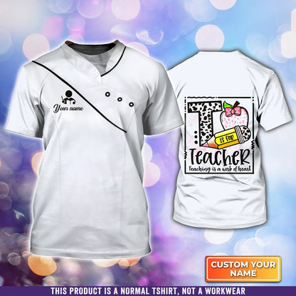 Teaching Is A Work At Heart Personalized Name 3D Tshirt, Perfect Gift for Teacher, Teacher Shirt TO3336