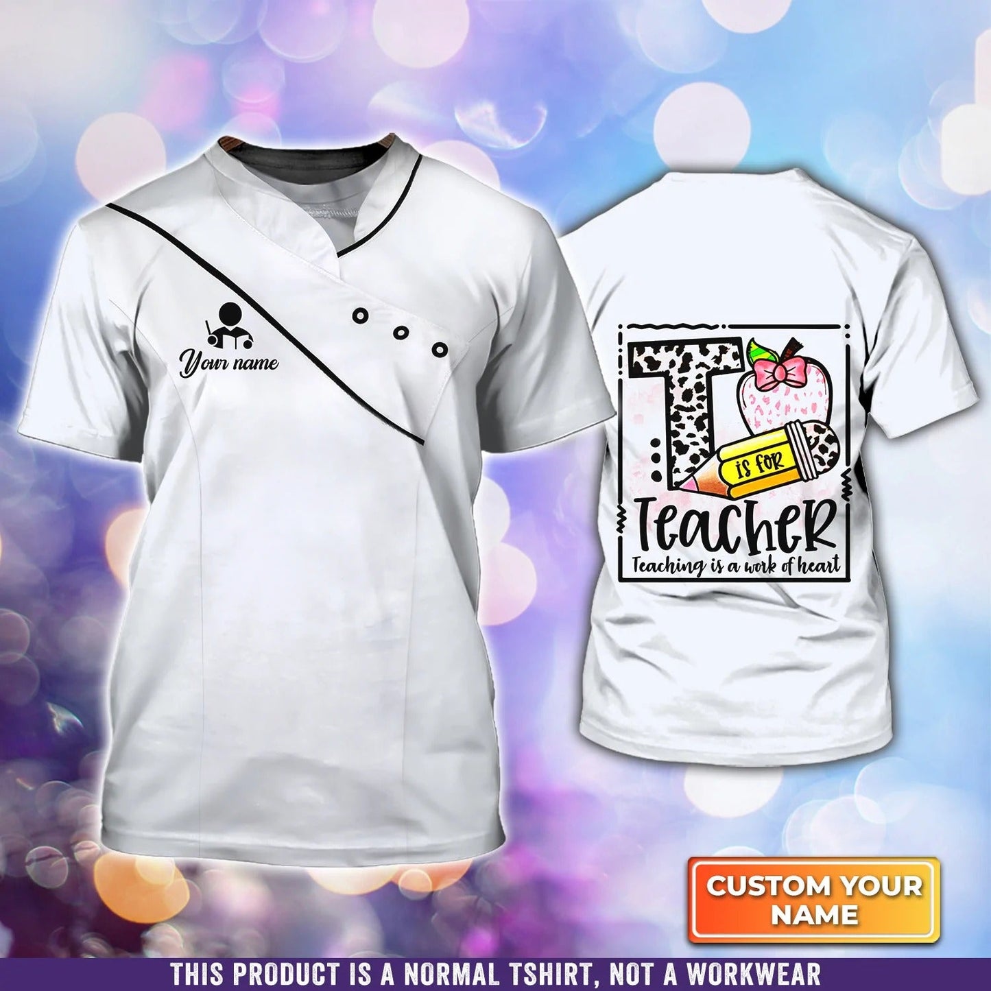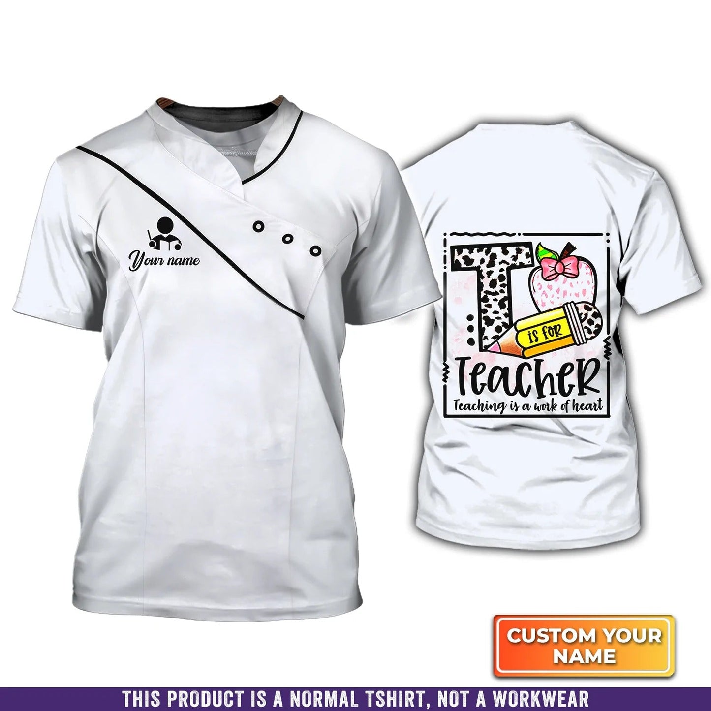 Teaching Is A Work At Heart Personalized Name 3D Unisex Tshirt, 3D Teacher Shirts TO2252