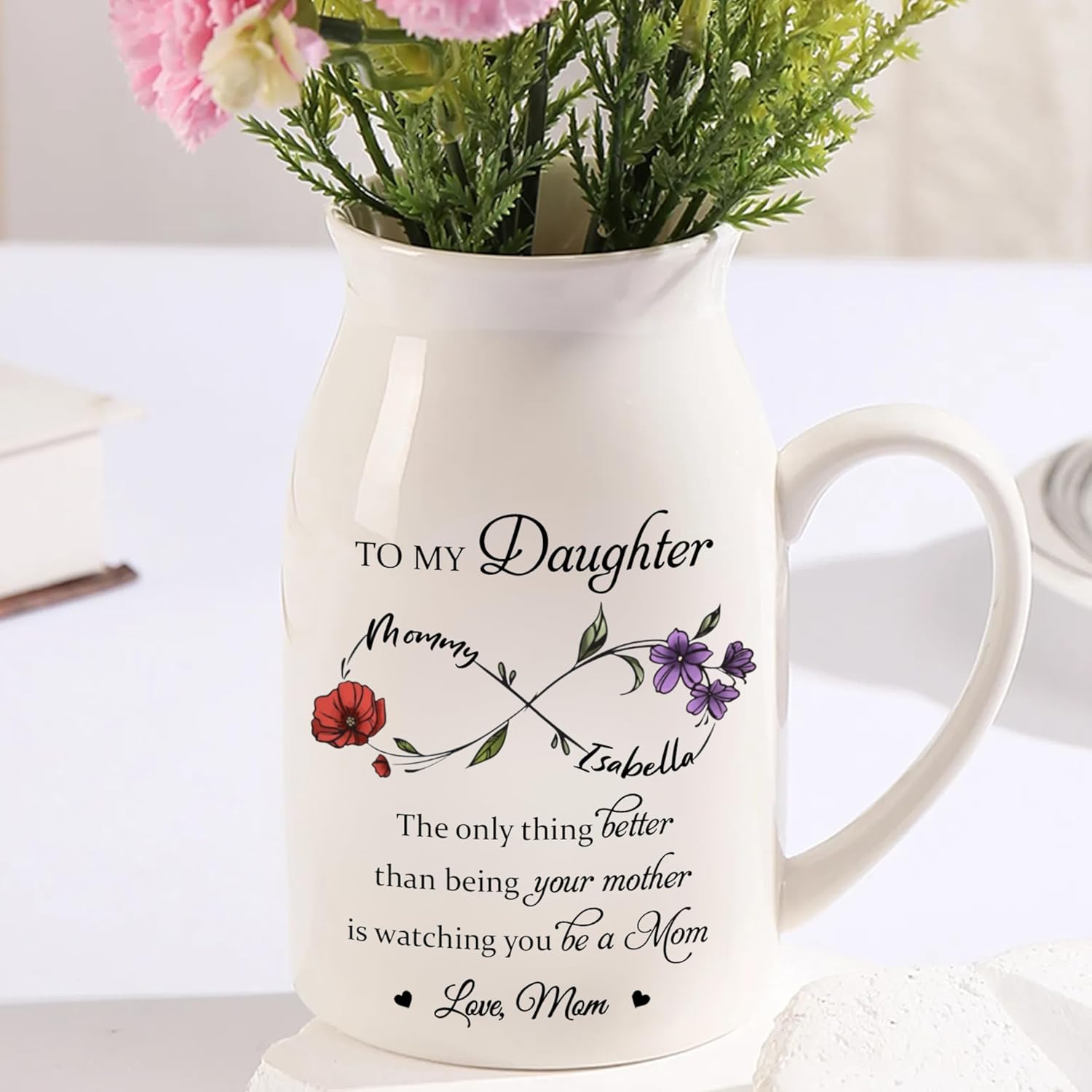 The Only Thing Better Than Being Your Mother Is Watching You Be A Mom Personalized Infinity Birth Flower Vase, Personalized To My Daughter Vase TD0036