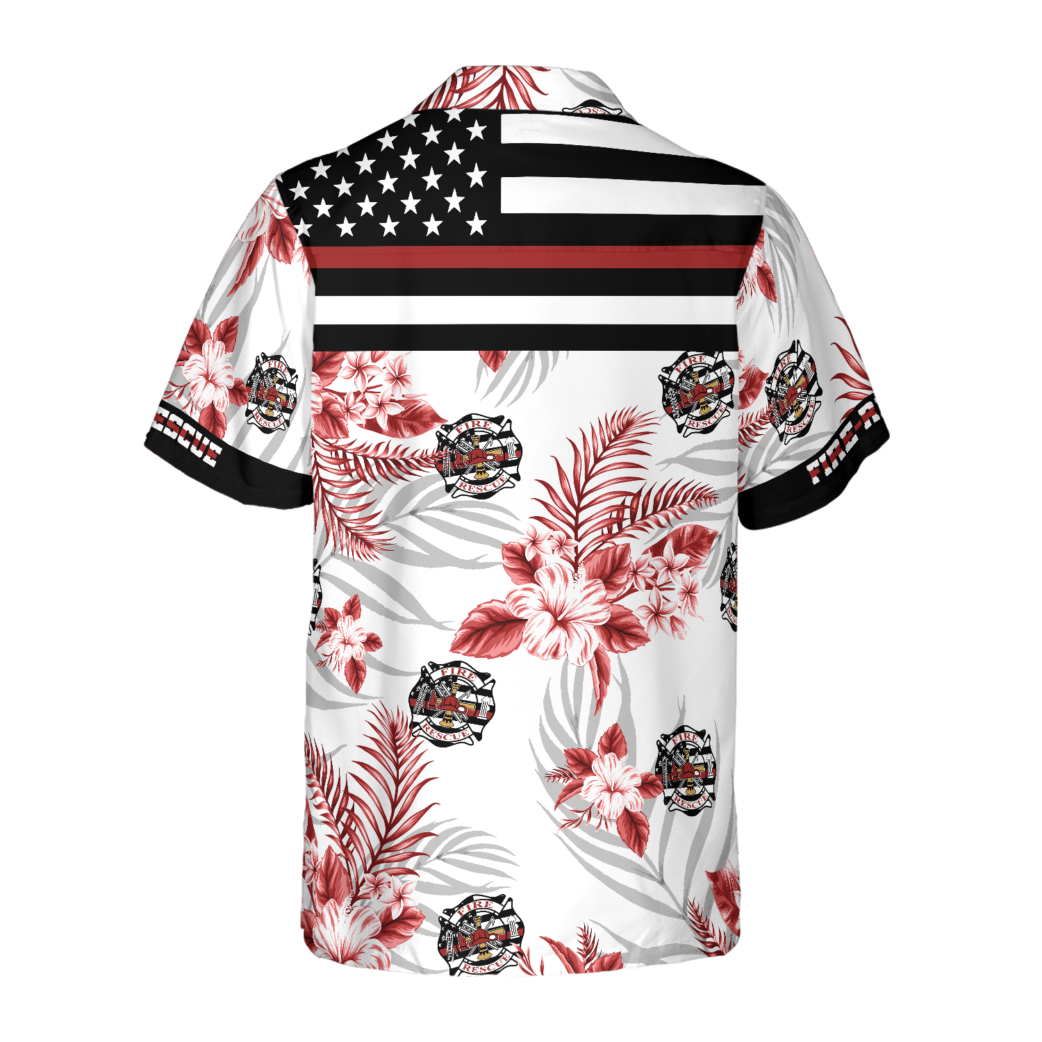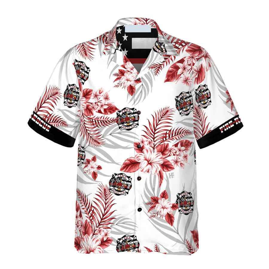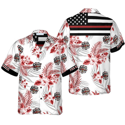 The Red Line Black American Flag Firefighter Hawaiian Shirt, Red Texas Bluebonnet Fire Dept Logo Firefighter Shirt For Men HO0242