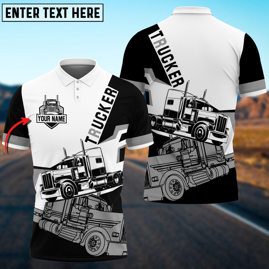 Trucker Black and Multicolor Truck Personalized Name 3D Polo Shirt For Truck Driver TO3514