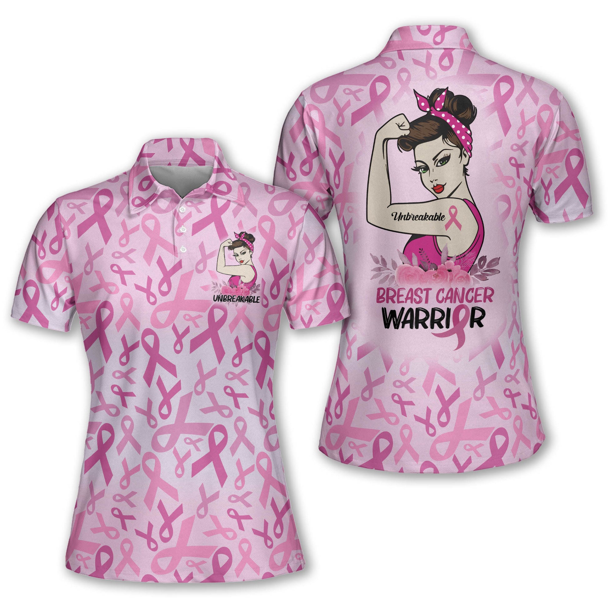Unbreakable Breast Cancer Warrior Pink Breast Cancer Awareness Short Sleeve Women Polo Shirt Lasfour SO0763