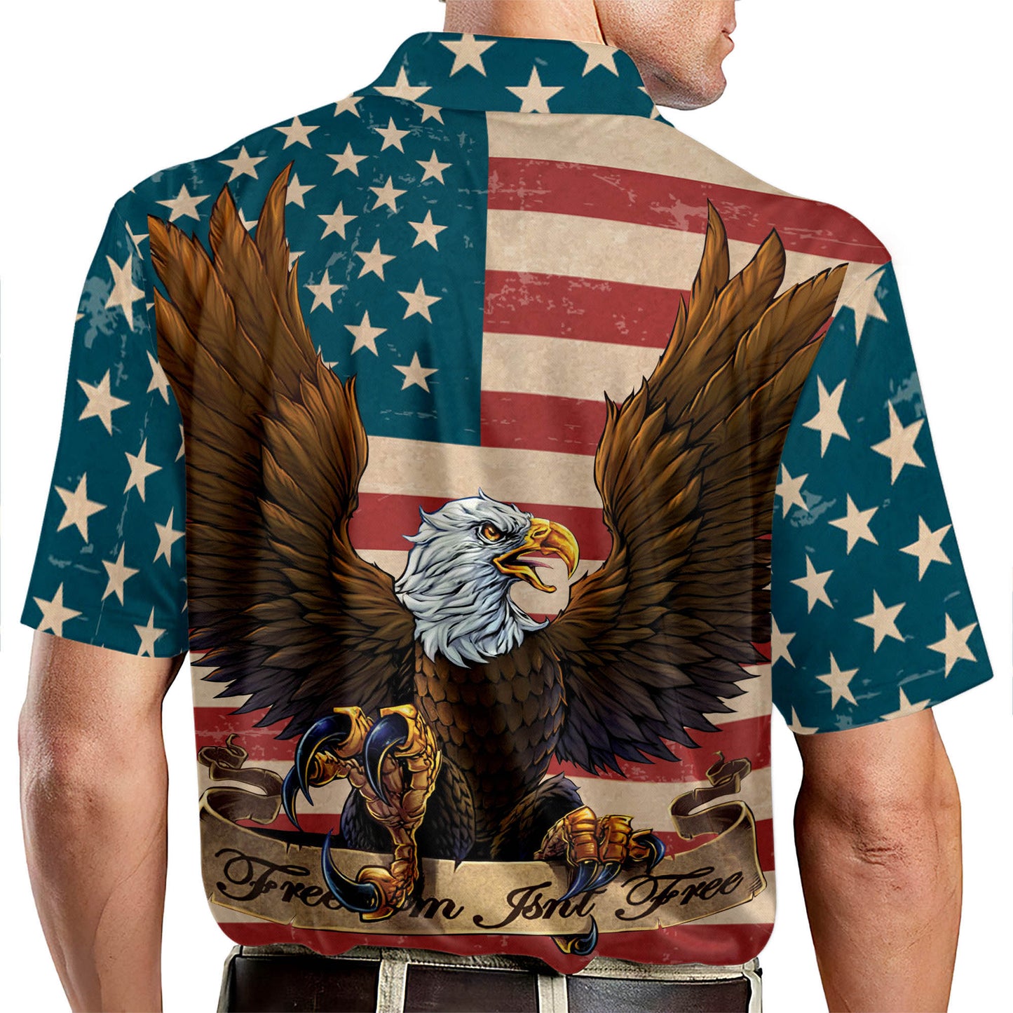 Vintage Freedom Isn't Free American Flag With Eagle Polo Shirt EG0030