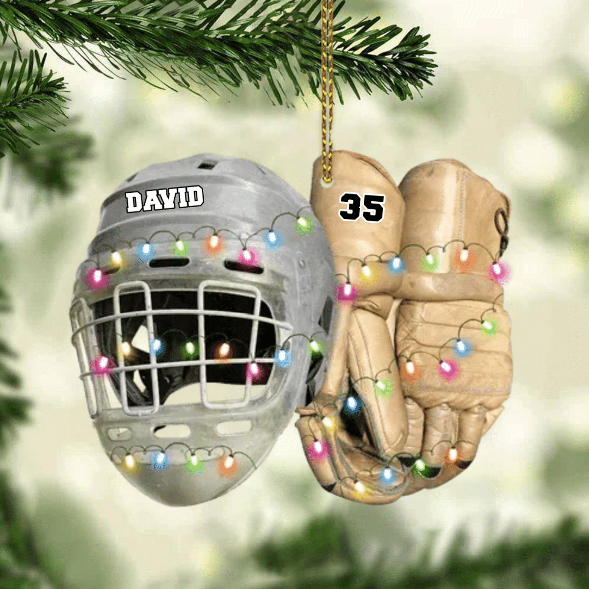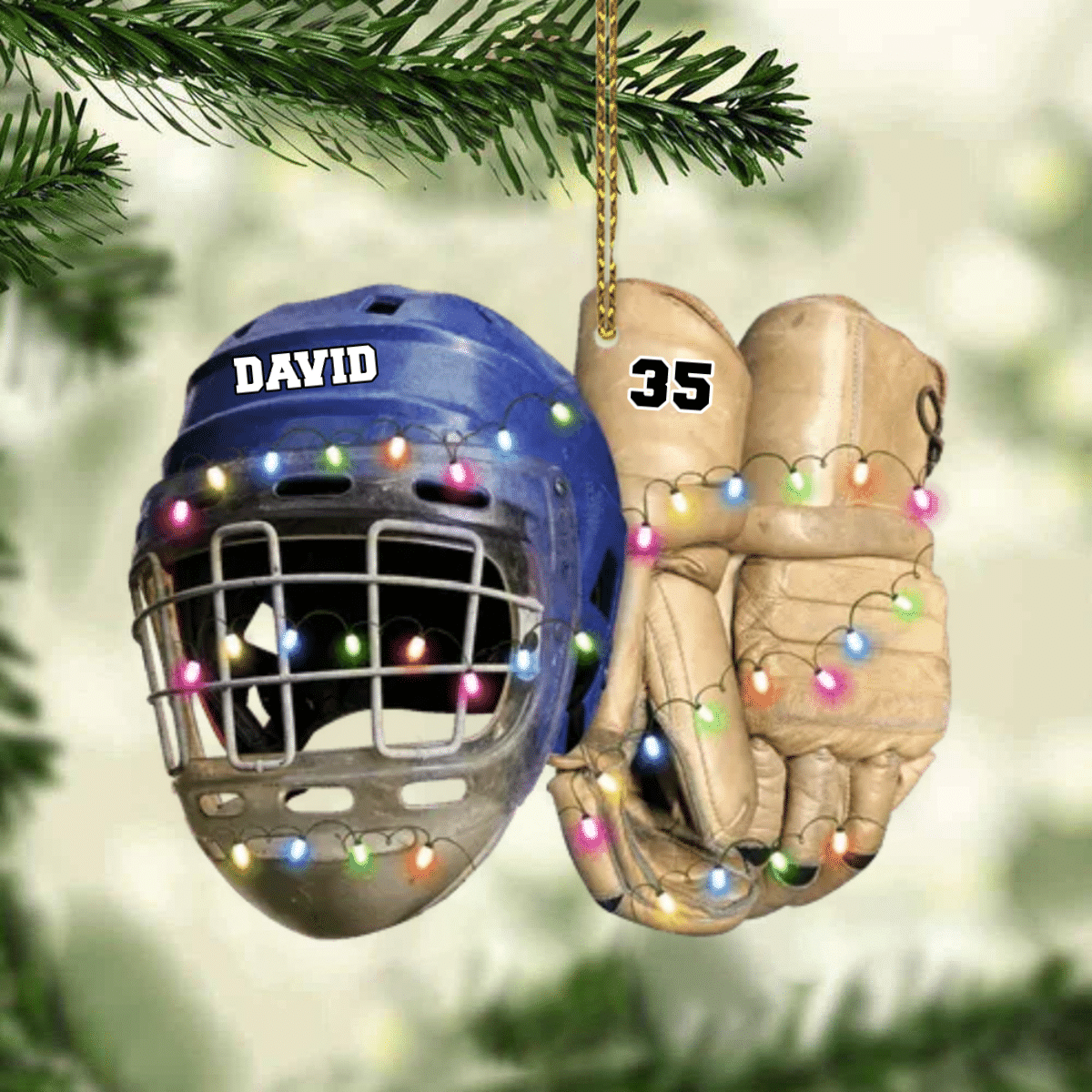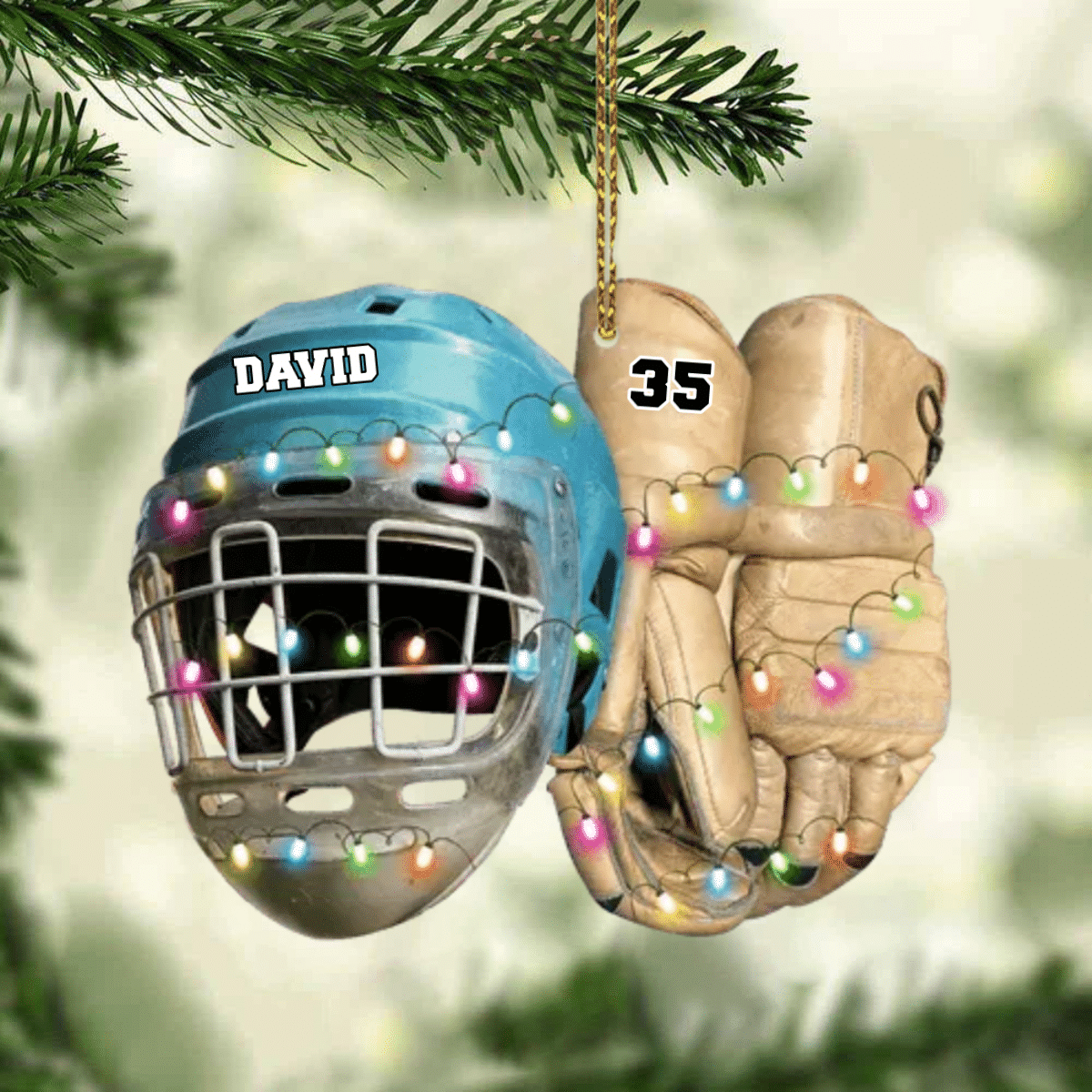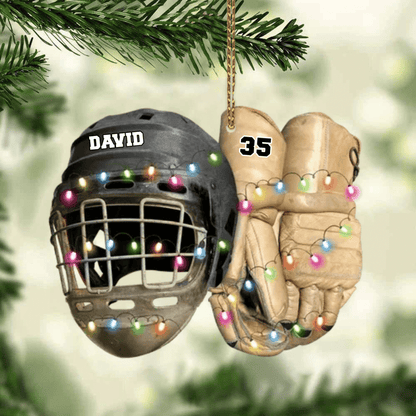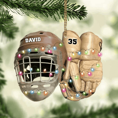 Vintage Hockey Equipment - Personalized Hockey Christmas Ornament for Hockey Players OO1980