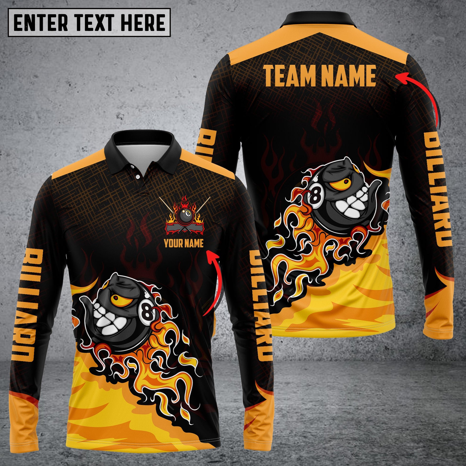 Lasfour Personalized Billiard Ball 8 Fire Player Long sleeve zipper Polo Shirt BIA0671
