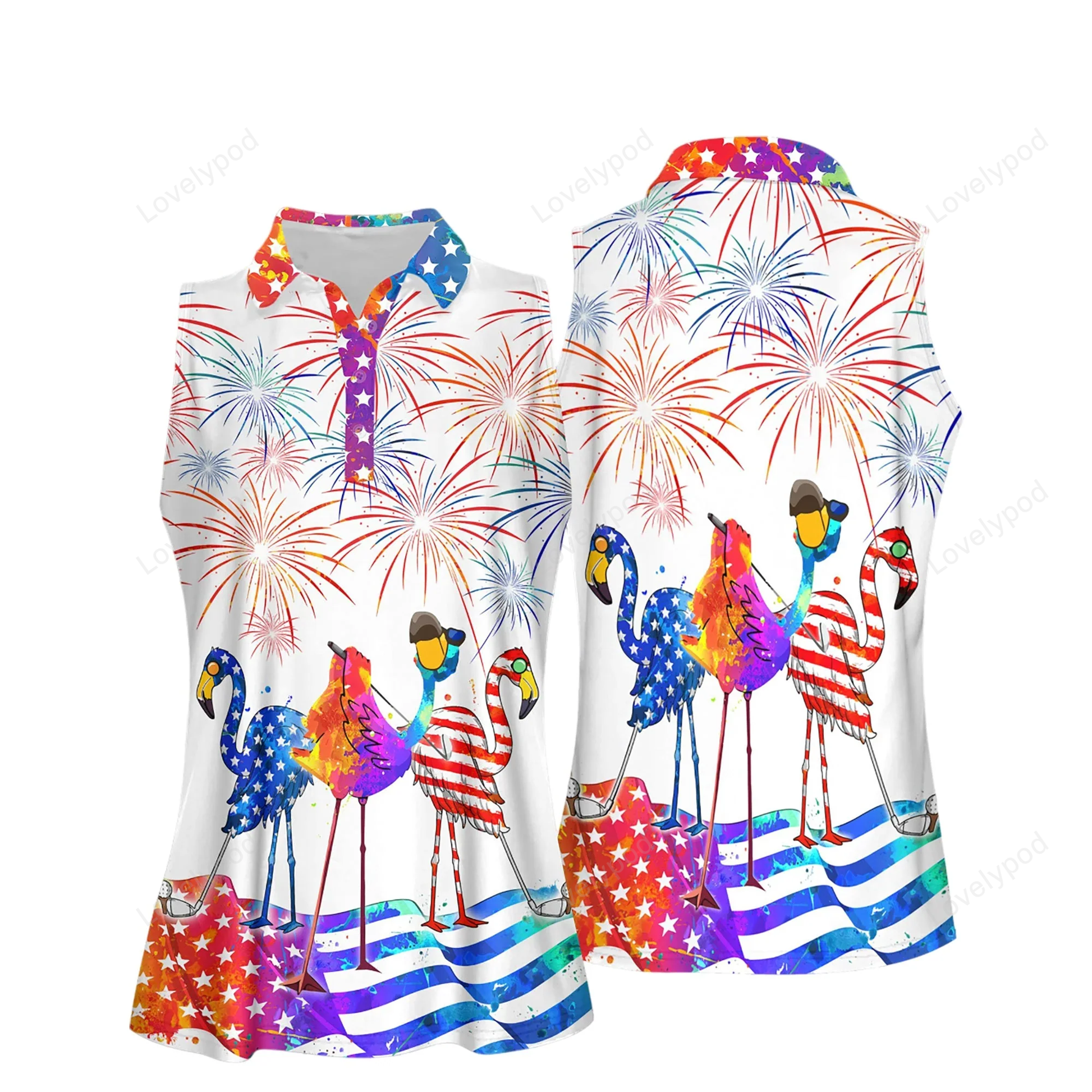 Water color 4th of july patriotic funny flamingo golf women short sleeve polo shirt, women’s jersey polo shirt GY0035