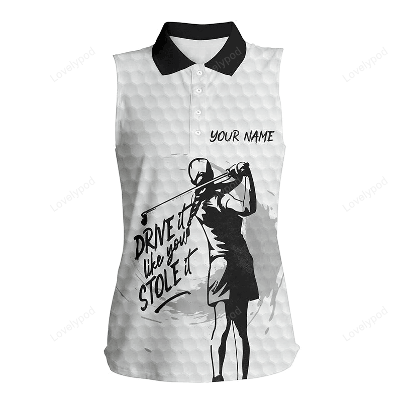 Women sleeveless polo shirt, custom name white golf ball drive it like you stole it, funny golf shirts, women's golf shirt, golf clothing GY0164