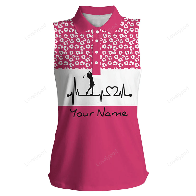Women's sleeveless golf polo shirt golf heartbeat custom name leopard pattern golf shirt GY0154