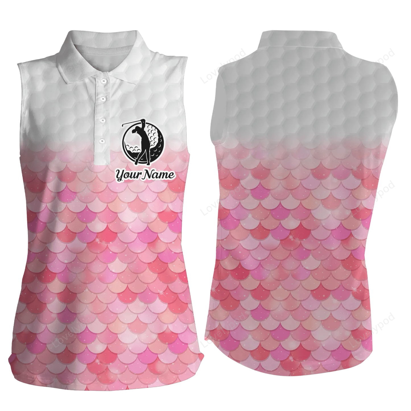 Womens sleeveless polo shirt pink mermaid scales custom name pattern golf shirts GY0304